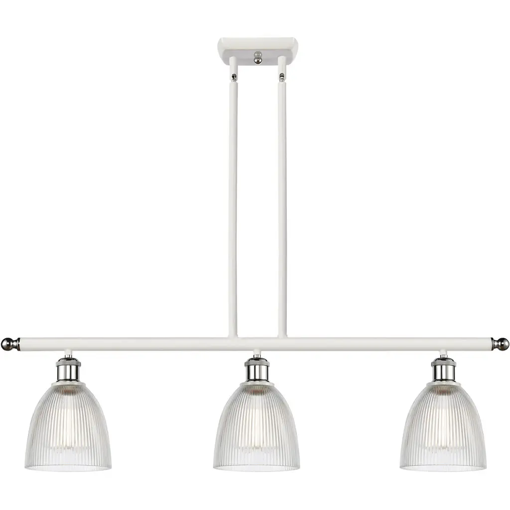 The Castile 3 Light Island Light is part of the Ballston Collection. Includes 10 Feet Wire. Includes 2-6 and 4-12 inch Stems. Additional Stems sold separately.. Solid Brass 90 Degree Hang Straight Swivel for Sloped Ceilings Included