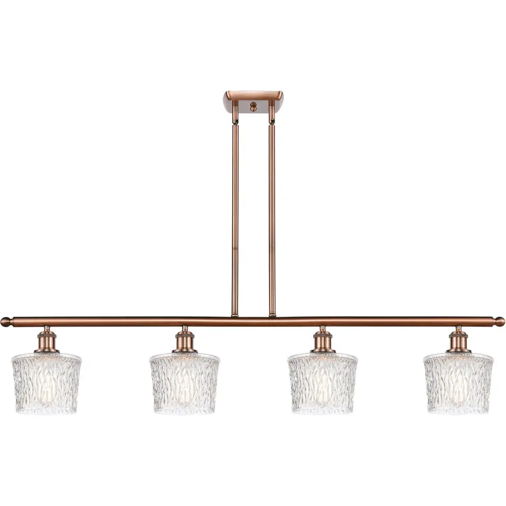 The Cobbleskill 4 Light Island Light is part of the Ballston Collection. Includes 10 Feet Wire. Includes 2-6 and 4-12 inch Stems. Additional Stems sold separately. Solid Brass 90 Degree Hang Straight Swivel for Sloped Ceilings Included