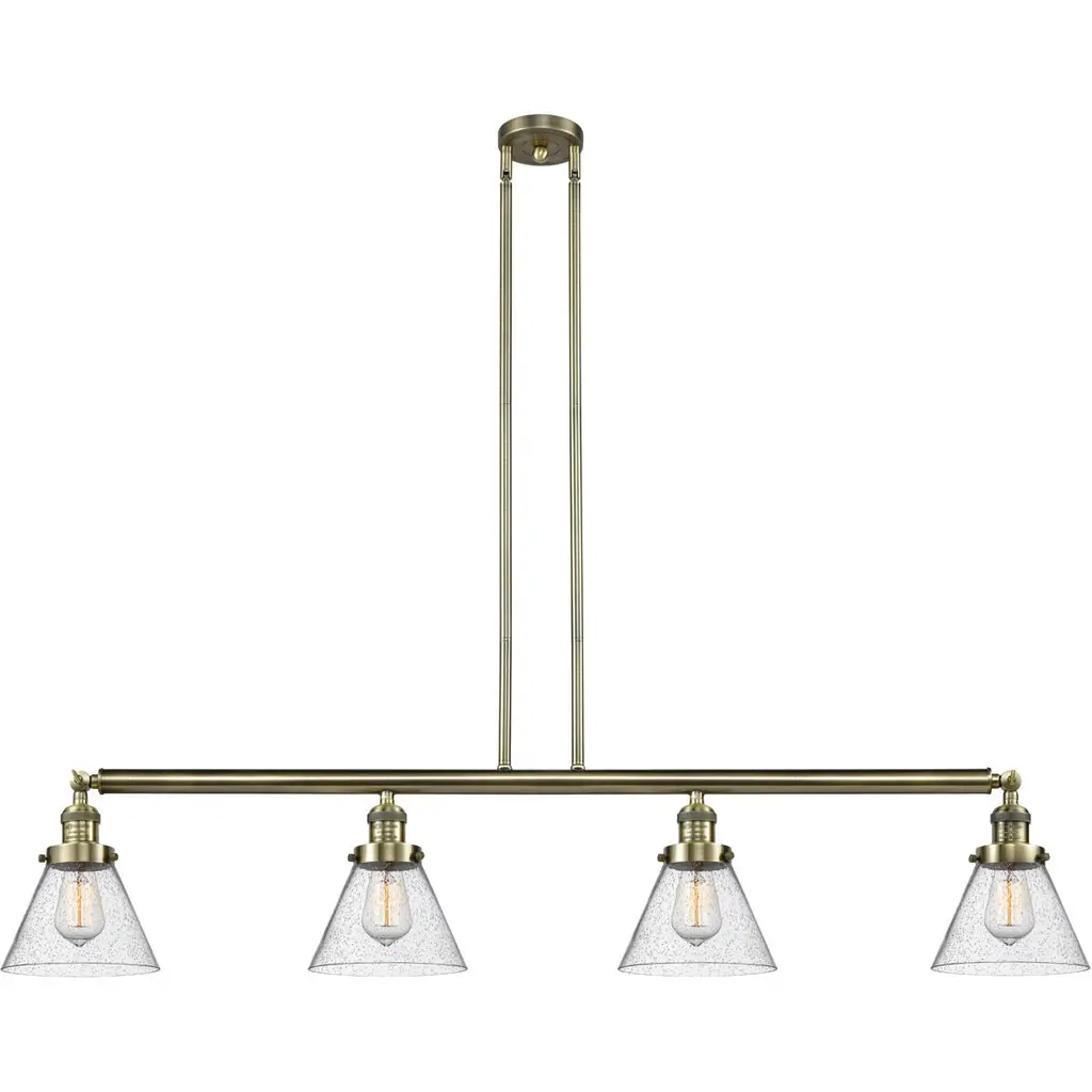 Ballston Cobbleskill 4 Light 48 Inch Antique Brass Island Light Ceiling Light In Mercury Glass, Ballston