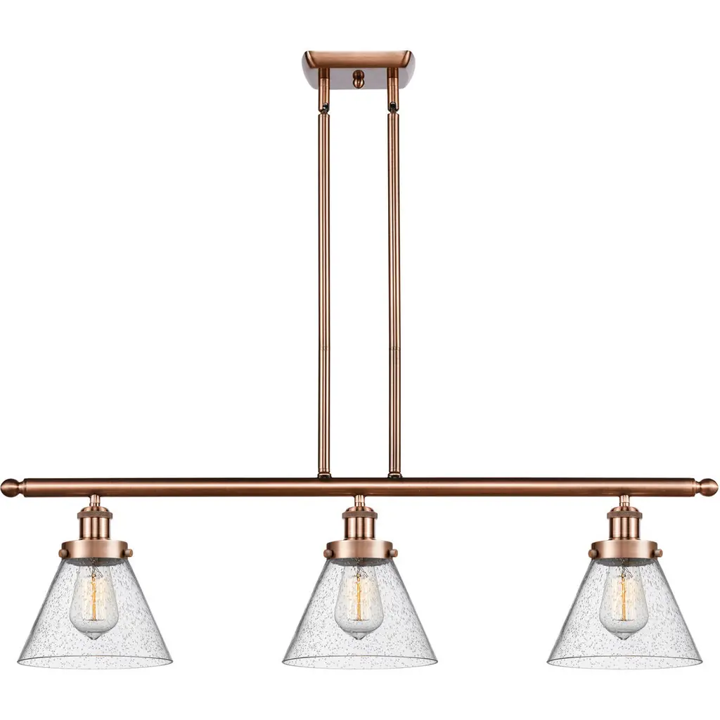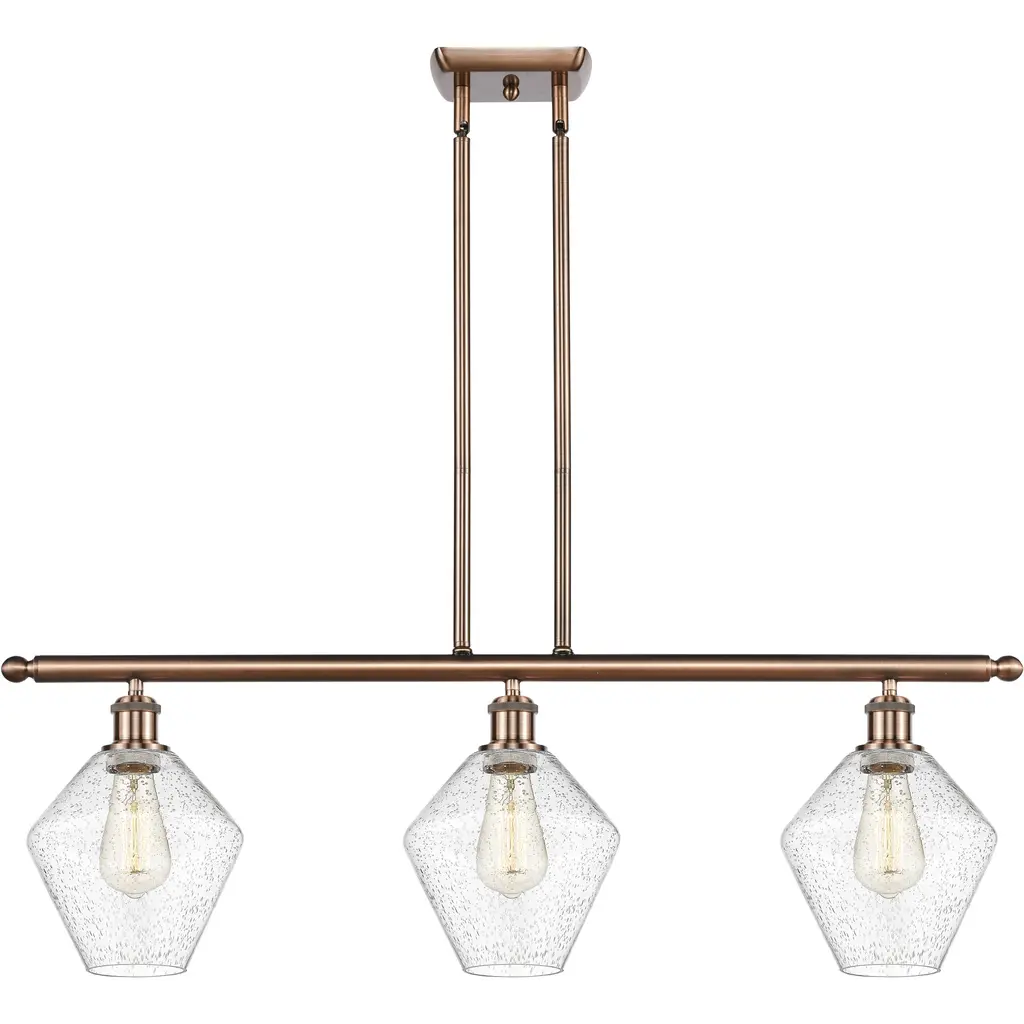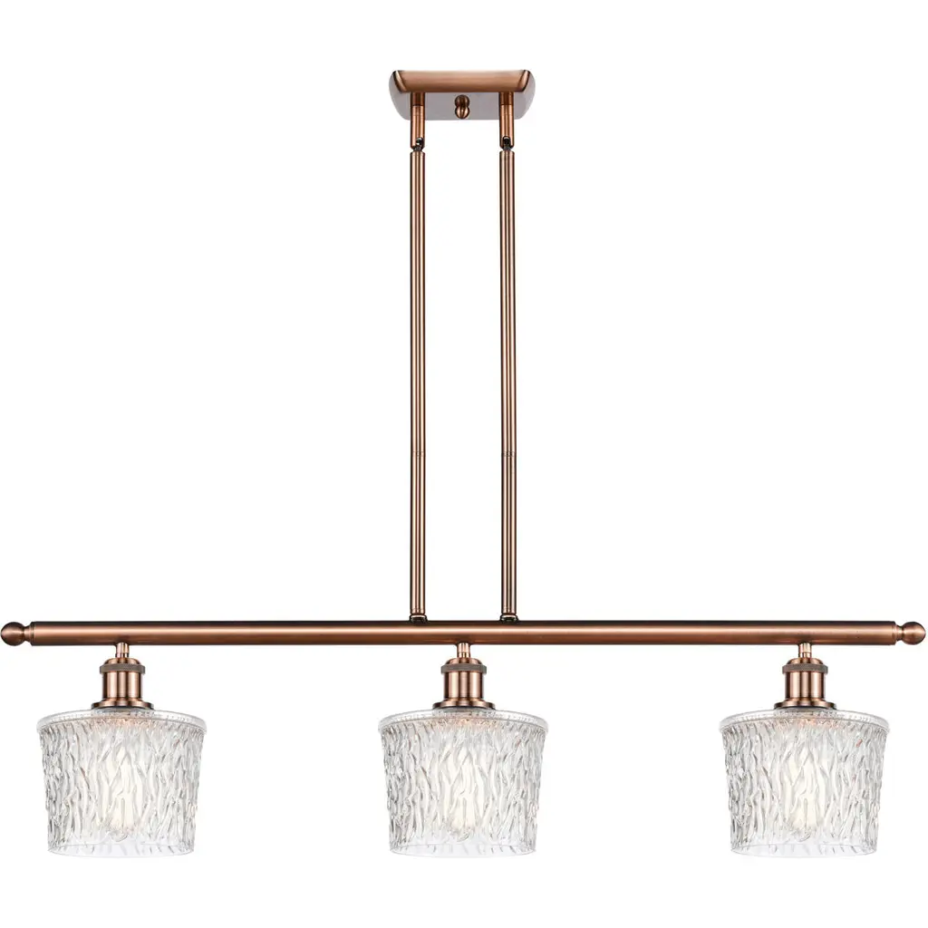 The Cobbleskill 3 Light Island Light is part of the Ballston Collection. Includes 10 Feet Wire. Includes 2-6 and 4-12 inch Stems With Solid Brass 90 Degree Hang Straight Swivels for Sloped Ceilings. Solid Brass 90 Degree Hang Straight Swivel for Sloped Ceilings Included