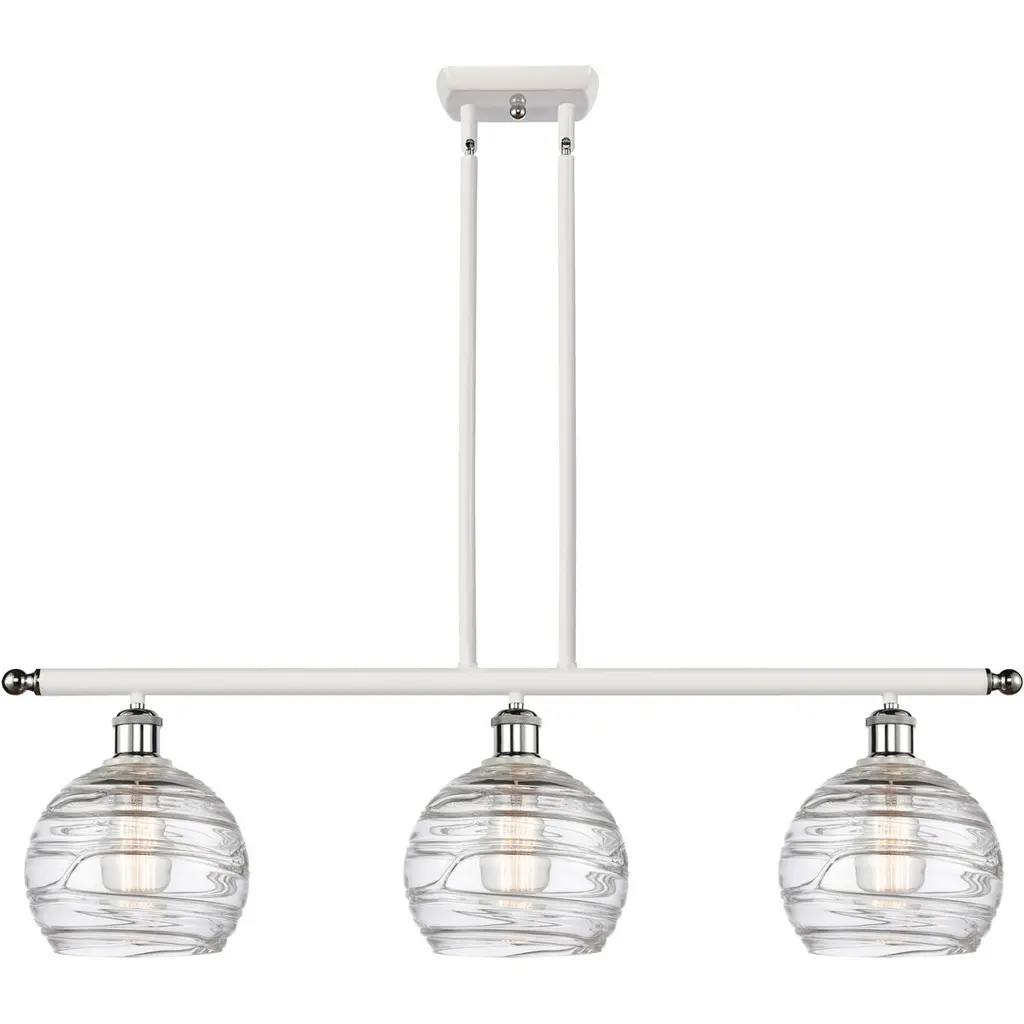 The Deco Swirl 3 Light Island Light is part of the Ballston Collection. Includes 10 Feet Wire. Includes 2-6 and 4-12 inch Stems. Additional Stems sold separately.. Solid Brass 90 Degree Hang Straight Swivel for Sloped Ceilings Included