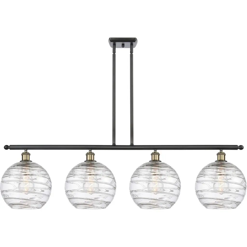 Ballston Deco Swirl 3 Light 36 Inch Black Antique Brass Island Light Ceiling Light, Ballston