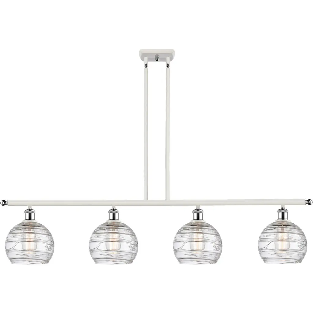 The Deco Swirl 4 Light Island Light is part of the Ballston Collection. Includes 10 Feet Wire. Includes 2-6 and 4-12 inch Stems. Additional Stems sold separately.. Solid Brass 90 Degree Hang Straight Swivel for Sloped Ceilings Included