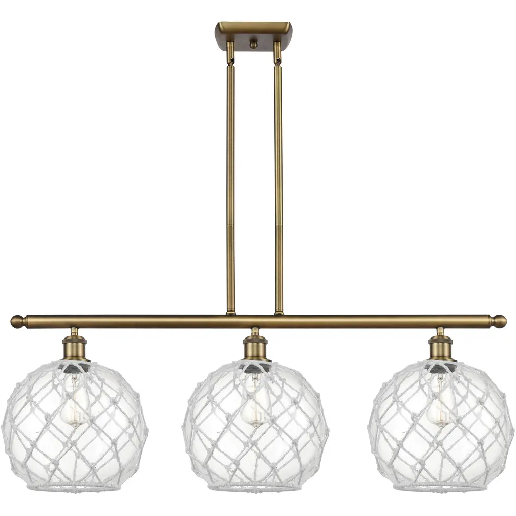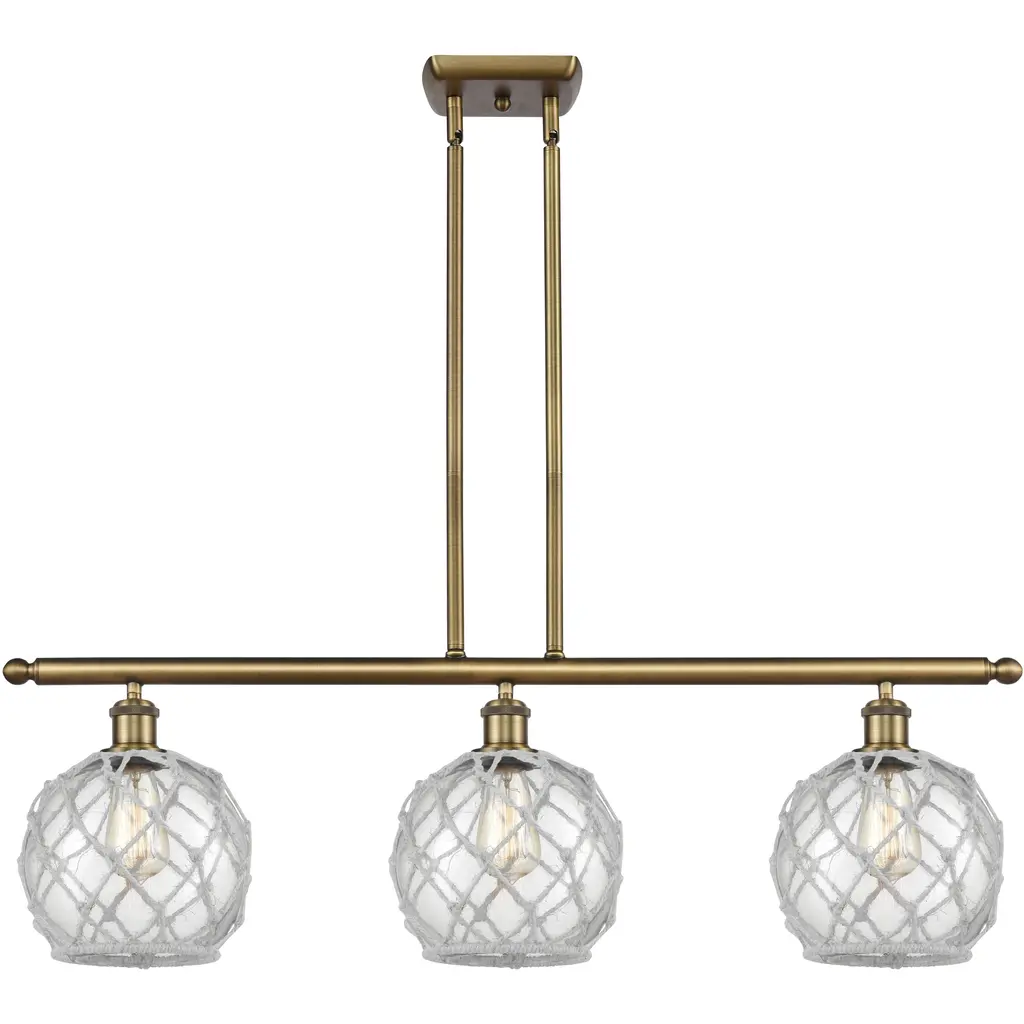 Ballston Farmhouse Rope Island Light Ceiling Light In Antique Brass, Clear Glass With White Rope