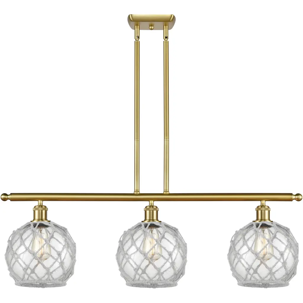 Ballston Farmhouse Rope Island Light Ceiling Light In Antique Brass, Clear Glass With White Rope