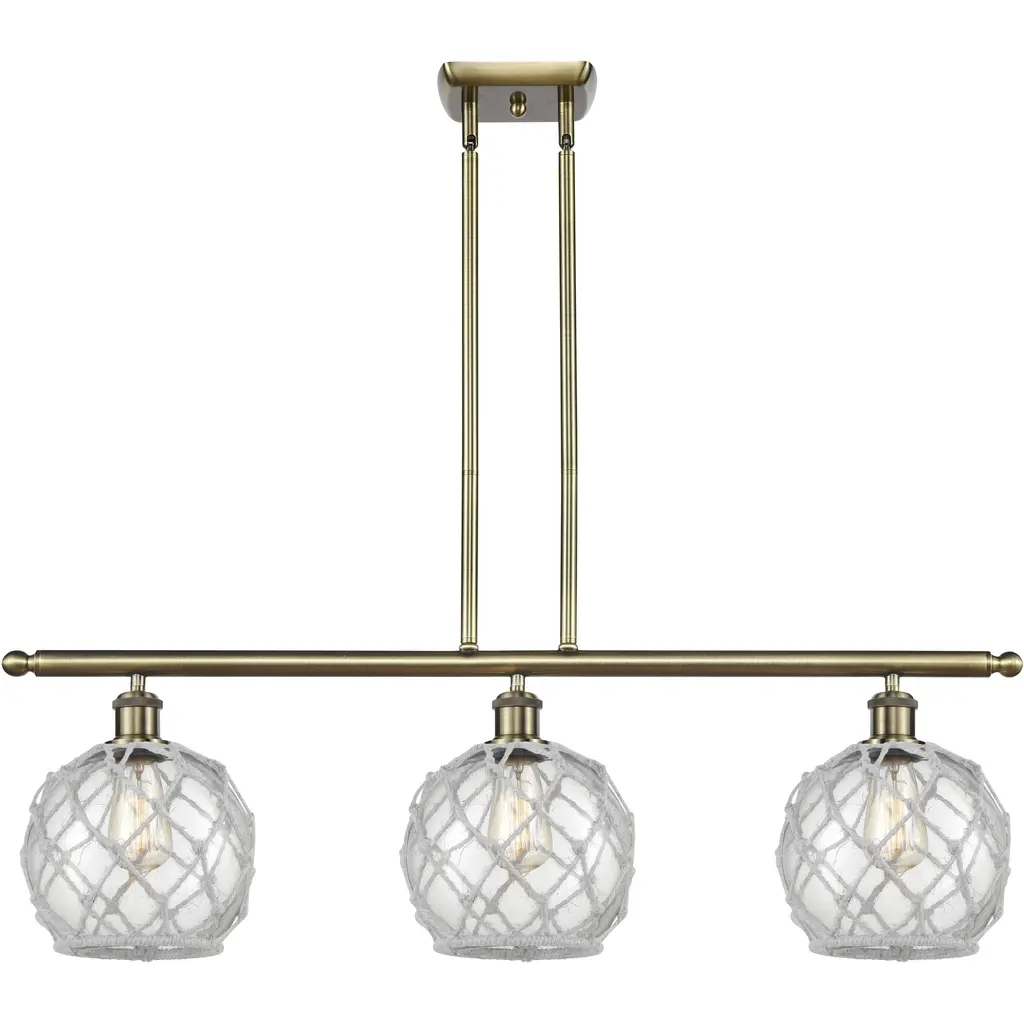 Ballston Farmhouse Rope Island Light Ceiling Light In Black Antique Brass, Clear Glass With White Rope, Ballston