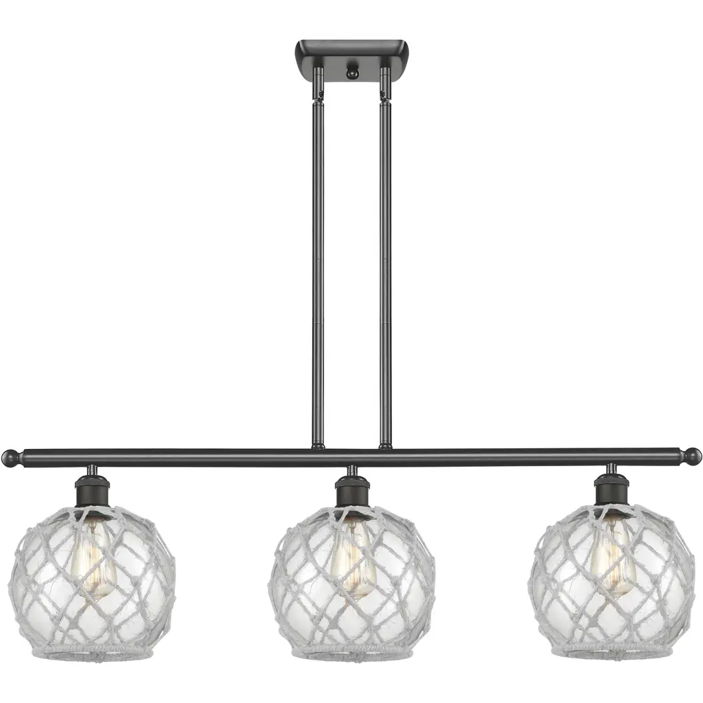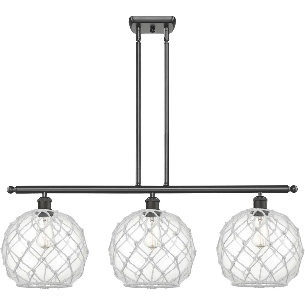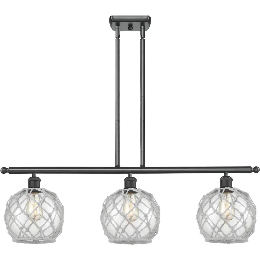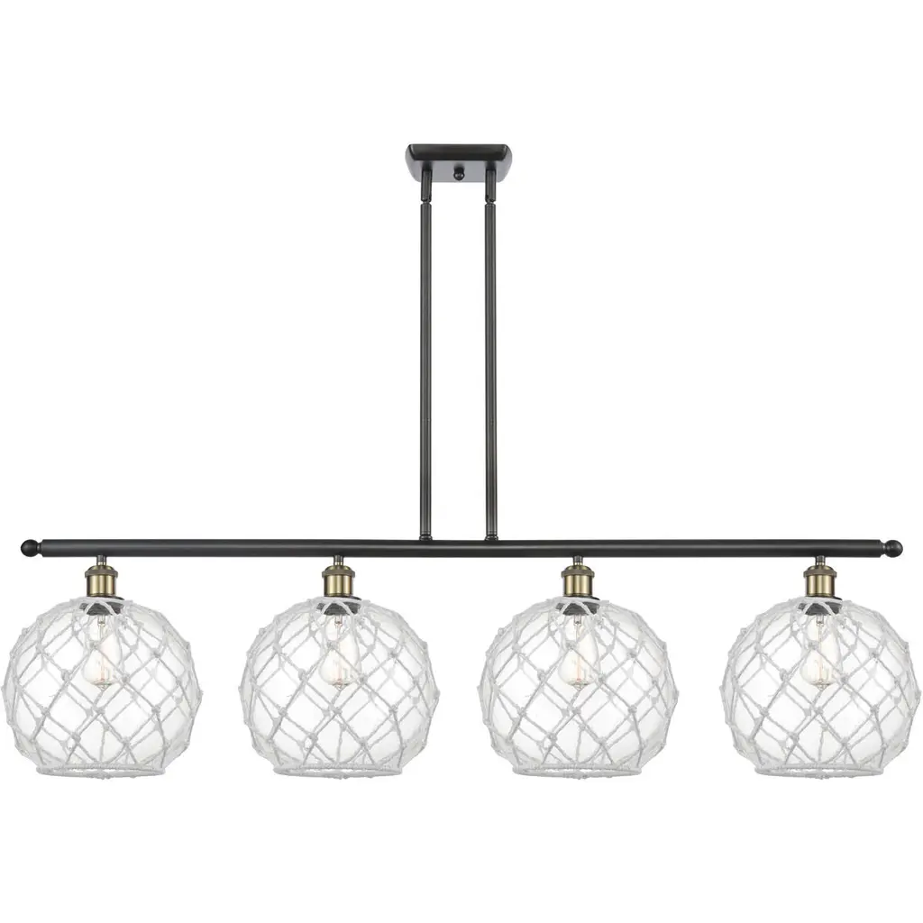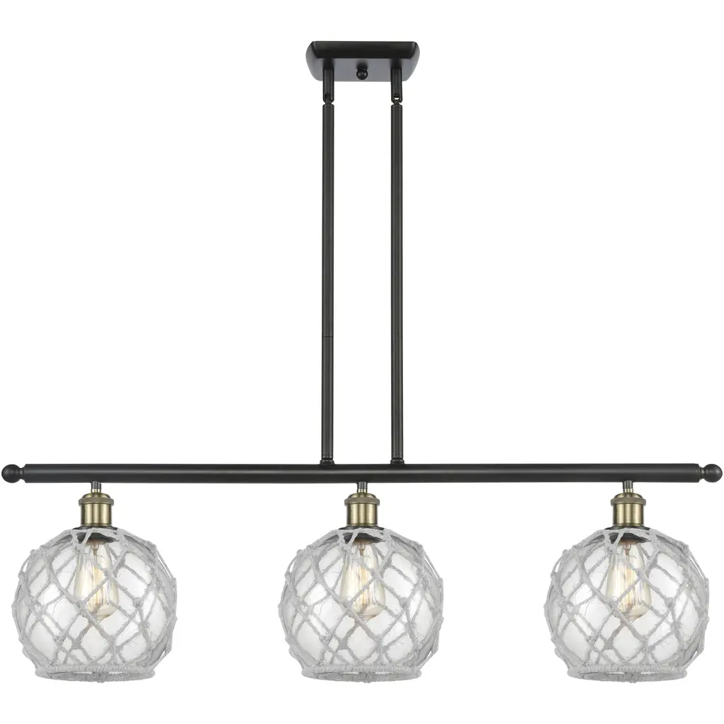 Ballston Farmhouse Rope Island Light Ceiling Light In Matte Black, Clear Glass With White Rope, Ballston