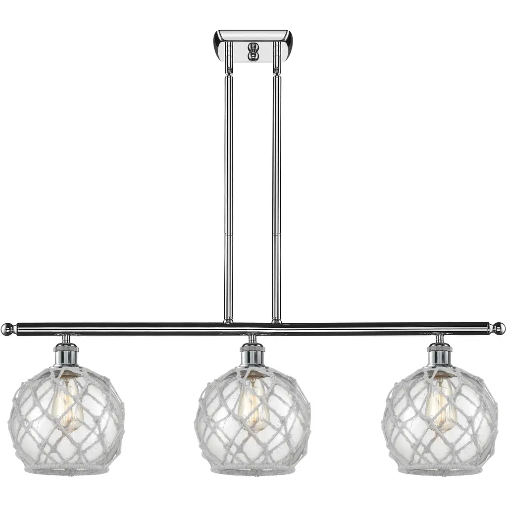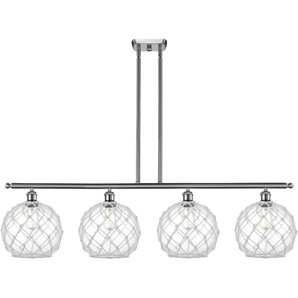 Ballston Farmhouse Rope Island Light Ceiling Light In Polished Nickel, Clear Glass With White Rope, Ballston