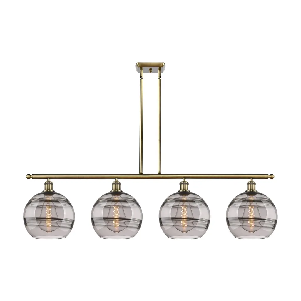 The Gorham 4 Light Island Light is part of the Ballston Collection. Includes 10 Feet Wire. Includes 2-6 and 4-12 inch Stems. Additional Stems sold separately.. Solid Brass 90 Degree Hang Straight Swivel for Sloped Ceilings Included