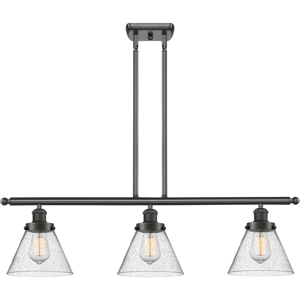 Ballston Large Cone 3 Light 36 Inch Matte Black Island Light Ceiling Light In Seedy Glass, Ballston