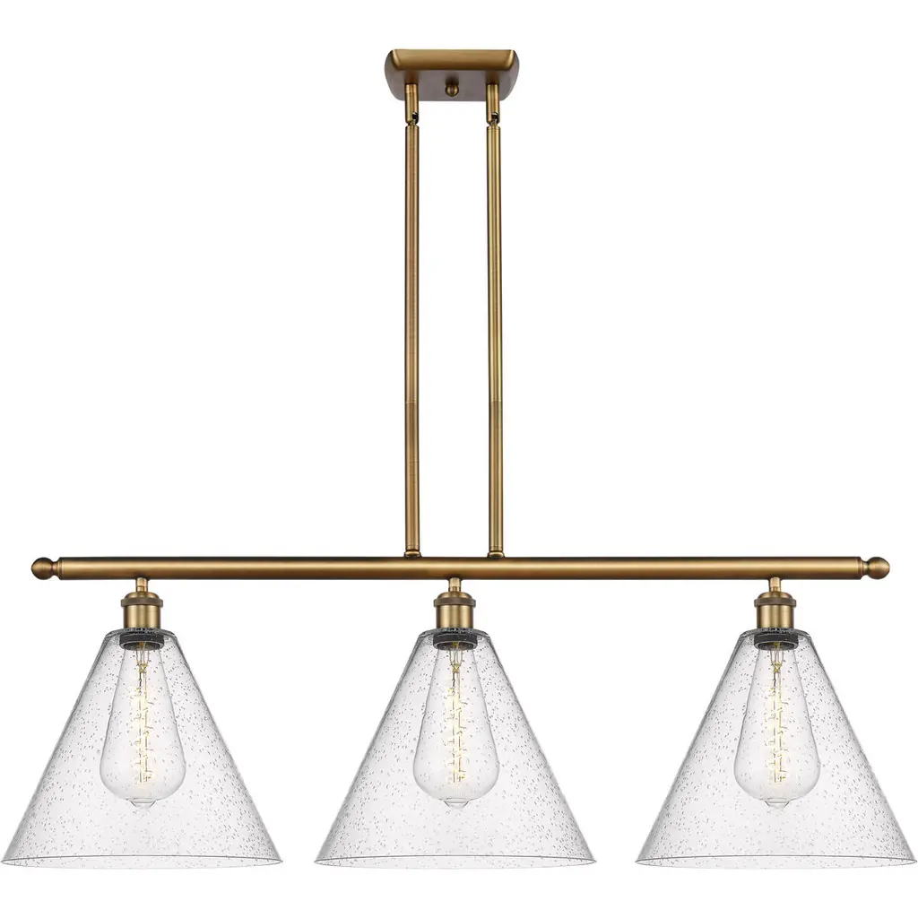 Ballston Large Cone 4 Light 48 Inch Brushed Brass Island Light Ceiling Light In Seedy Glass