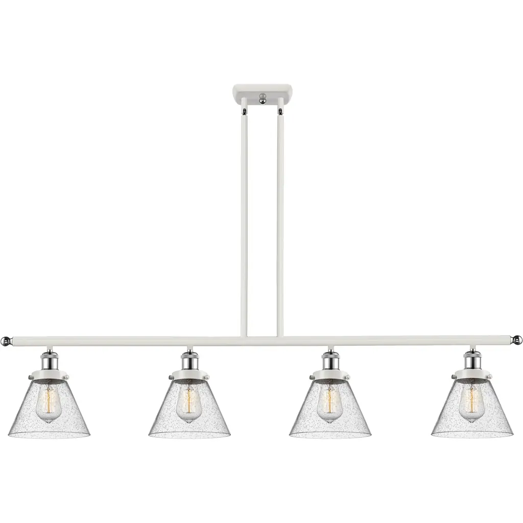 Ballston Large Cone 4 Light 48 Inch Polished Chrome Island Light Ceiling Light In Seedy Glass, Ballston