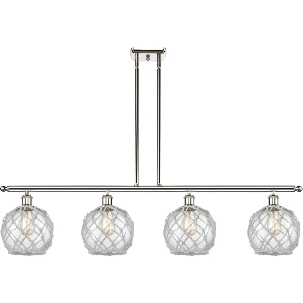 Ballston Large Farmhouse Rope Led 48 Inch Polished Chrome Island Light Ceiling Light In Clear Glass With White Rope, Ballston