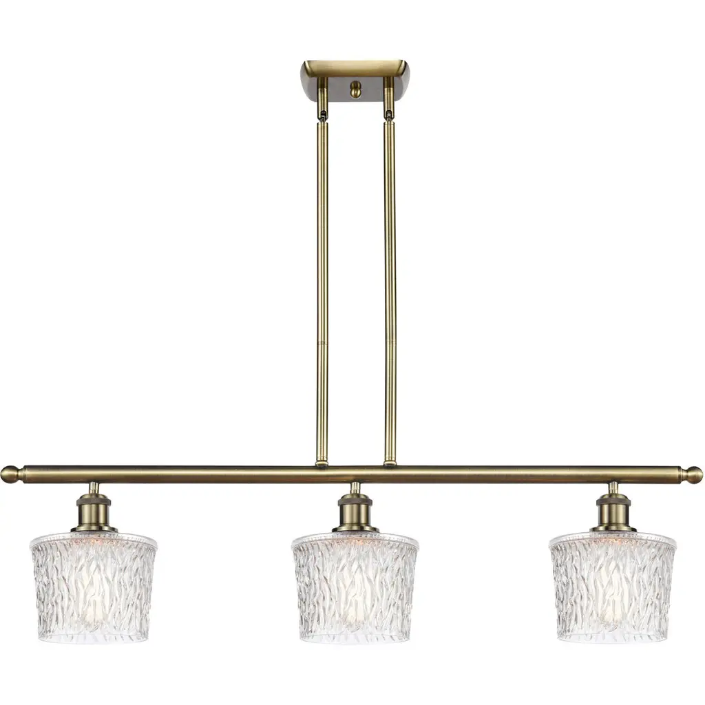 The Niagra 3 Light Island Light is part of the Ballston Collection. Includes 10 Feet Wire. Includes 2-6 and 4-12 inch Stems With Solid Brass 90 Degree Hang Straight Swivels for Sloped Ceilings. Solid Brass 90 Degree Hang Straight Swivel for Sloped Ceilings Included