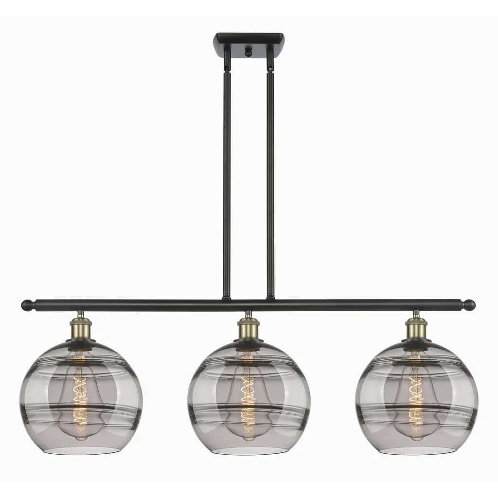 Ballston Rochester 3 Light 38.5 Inch Black Antique Brass Stem Hung Island Light Ceiling Light