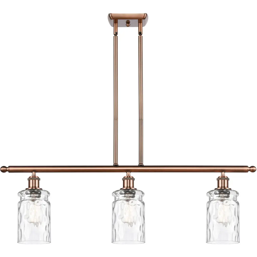 Ballston Small Cone 3 Light 36 Inch Antique Copper Island Light Ceiling Light In Seedy Glass