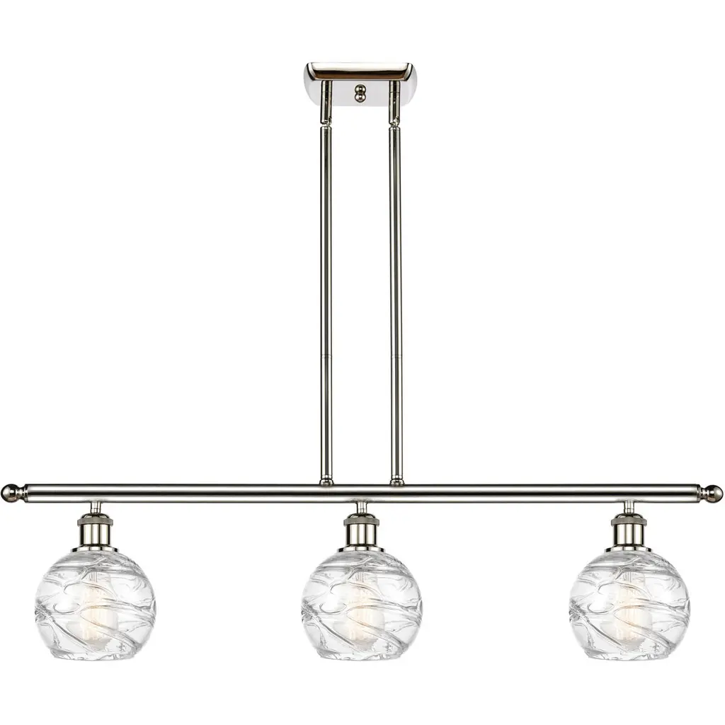 The Small Deco Swirl 4 Light Island Light is part of the Ballston Collection. Includes 10 Feet Wire. Includes 2-6 and 4-12 inch Stems. Additional Stems sold separately.. Solid Brass 90 Degree Hang Straight Swivel for Sloped Ceilings Included