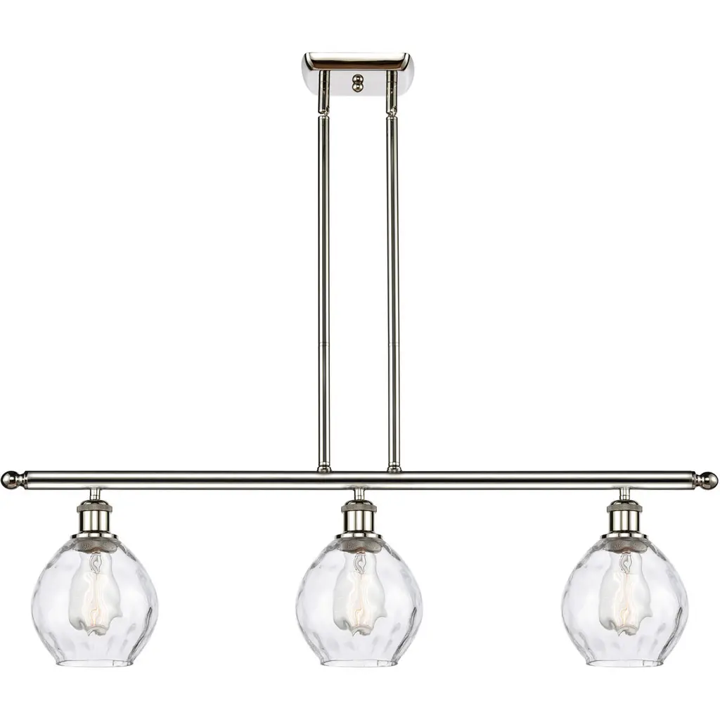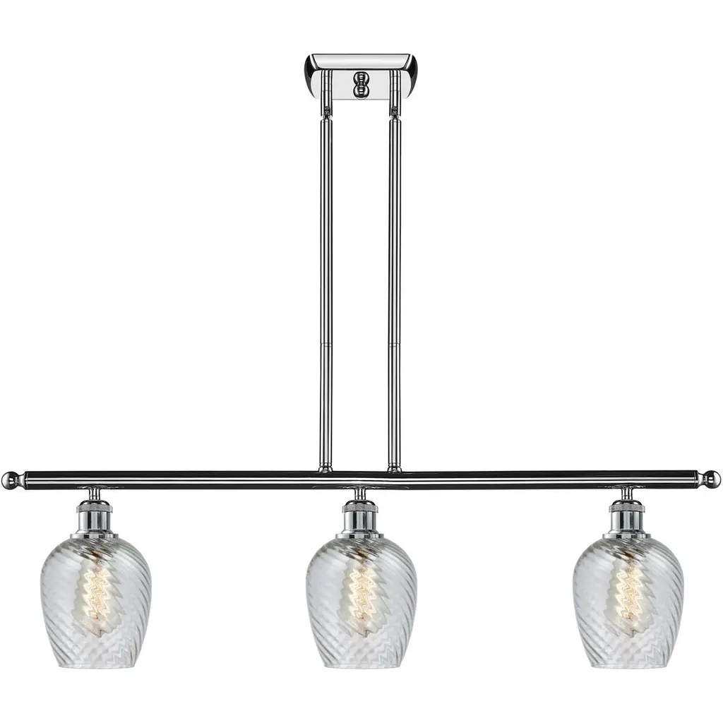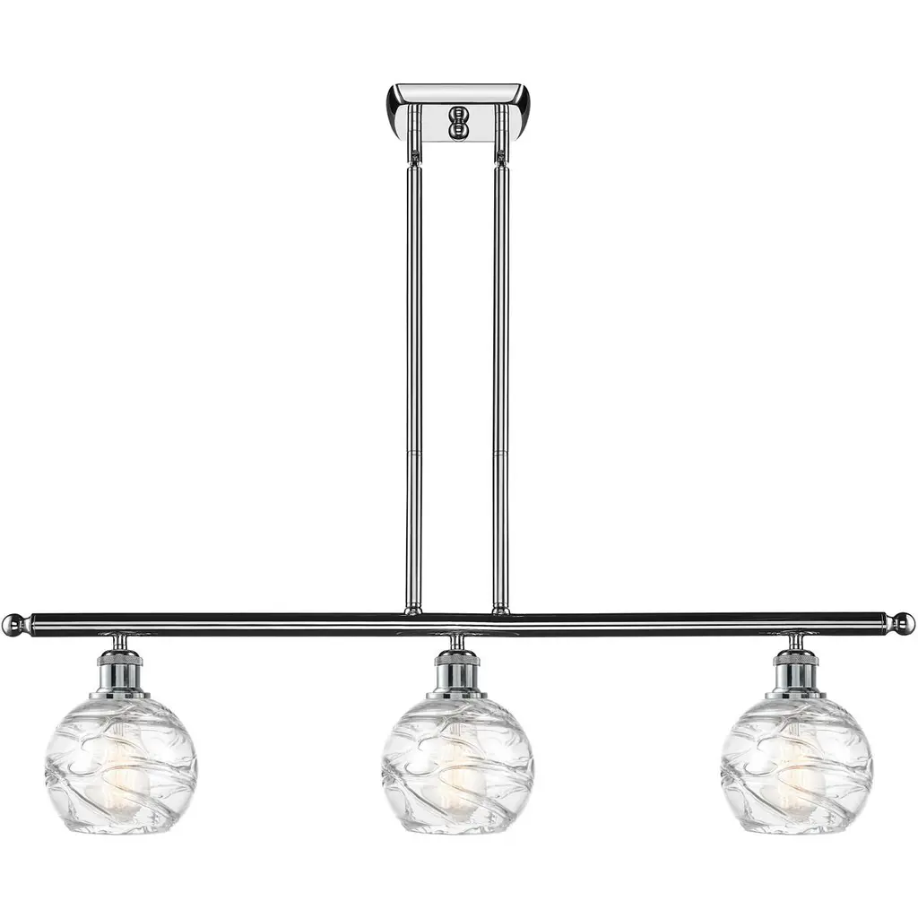 The Small Deco Swirl 3 Light Island Light is part of the Ballston Collection. Includes 10 Feet Wire. Includes 2-6 and 4-12 inch Stems With Solid Brass 90 Degree Hang Straight Swivels for Sloped Ceilings. Solid Brass 90 Degree Hang Straight Swivel for Sloped Ceilings Included