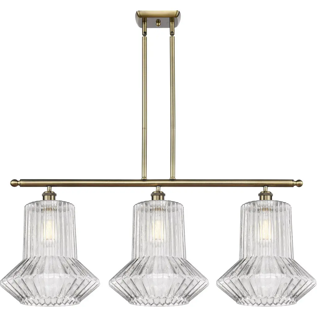 The Springwater 3 Light Island Light is part of the Ballston Collection. Includes 10 Feet Wire. Includes 2-6 and 4-12 inch Stems With Solid Brass 90 Degree Hang Straight Swivels for Sloped Ceilings. Solid Brass 90 Degree Hang Straight Swivel for Sloped Ceilings Included