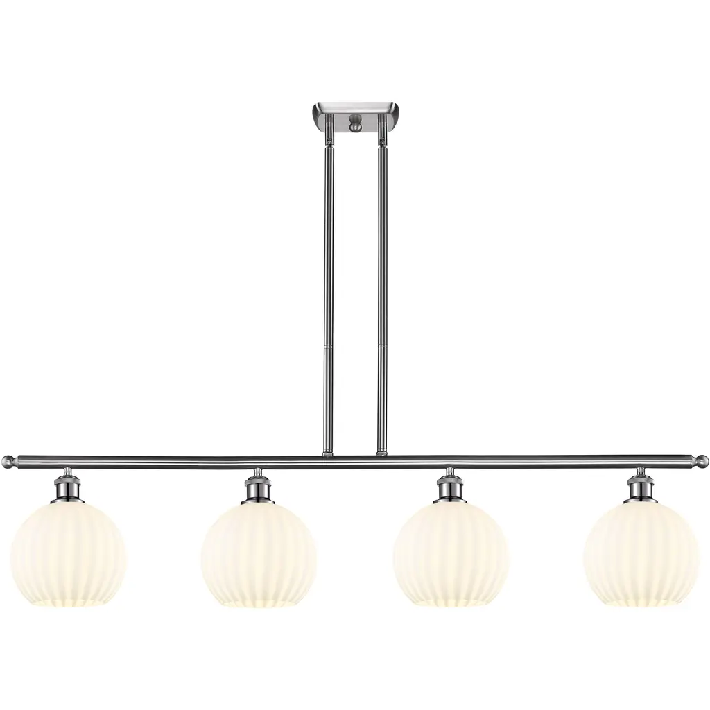 Ballston White Venetian 4 Light 48 Inch Polished Nickel Stem Hung Island Light Ceiling Light