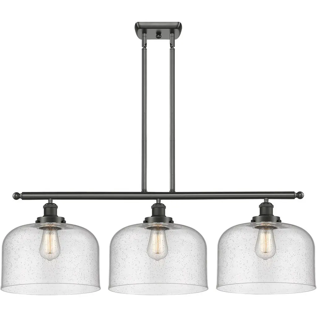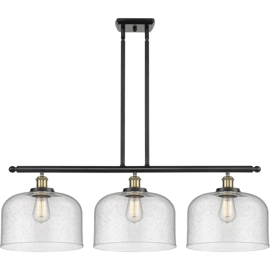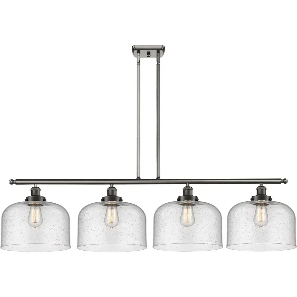 Ballston X-Large Bell 4 Light 48 Inch Matte Black Island Light Ceiling Light In Seedy Glass, Ballston