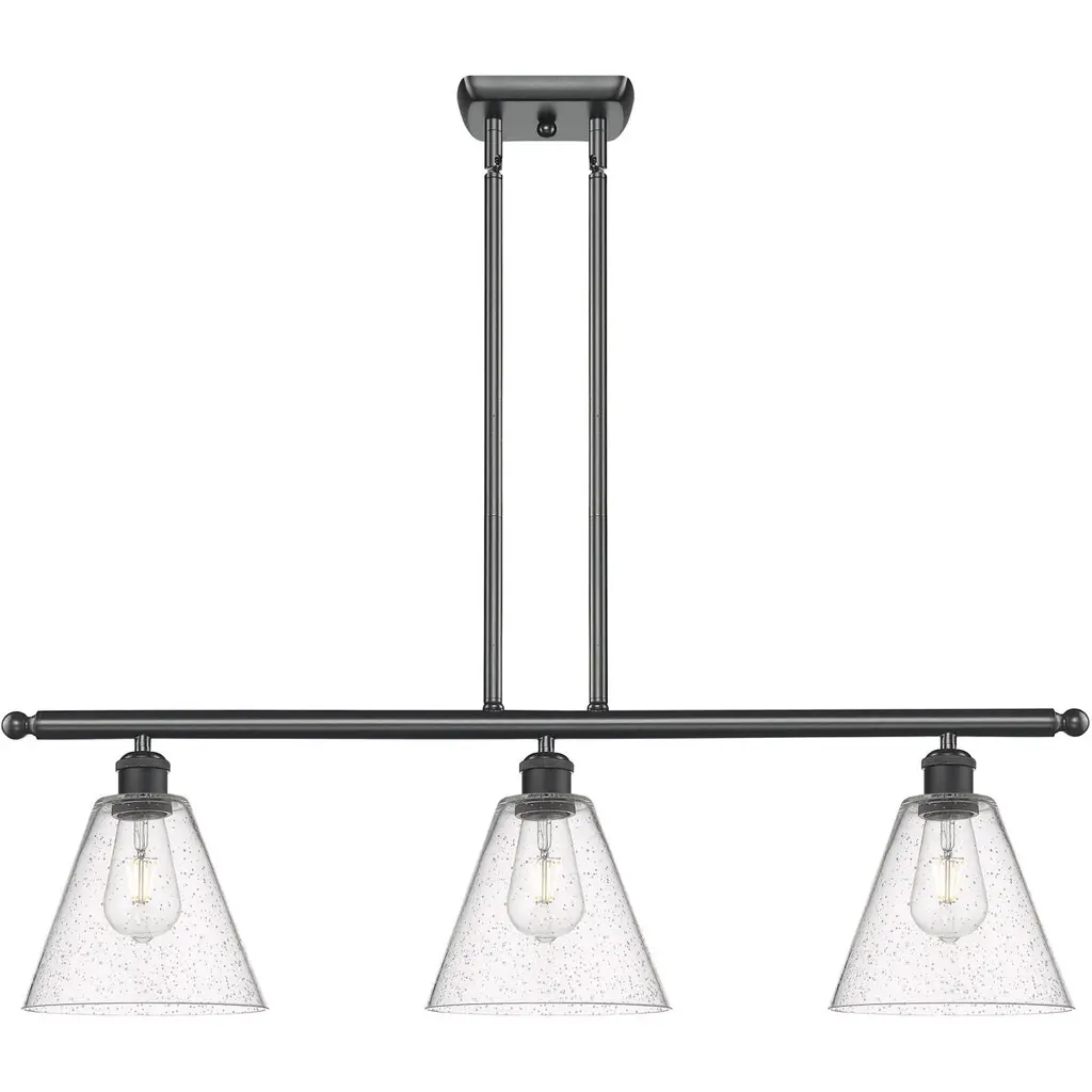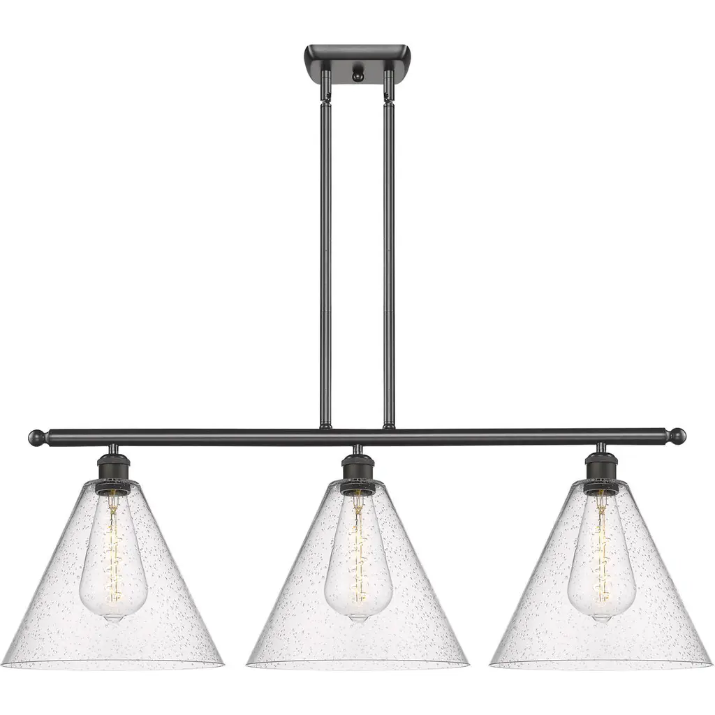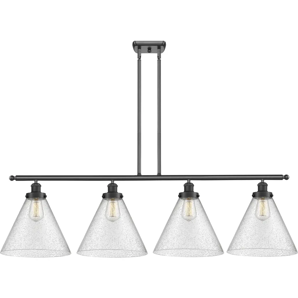 Ballston X-Large Bell 4 Light 48 Inch Matte Black Island Light Ceiling Light In Seedy Glass, Ballston