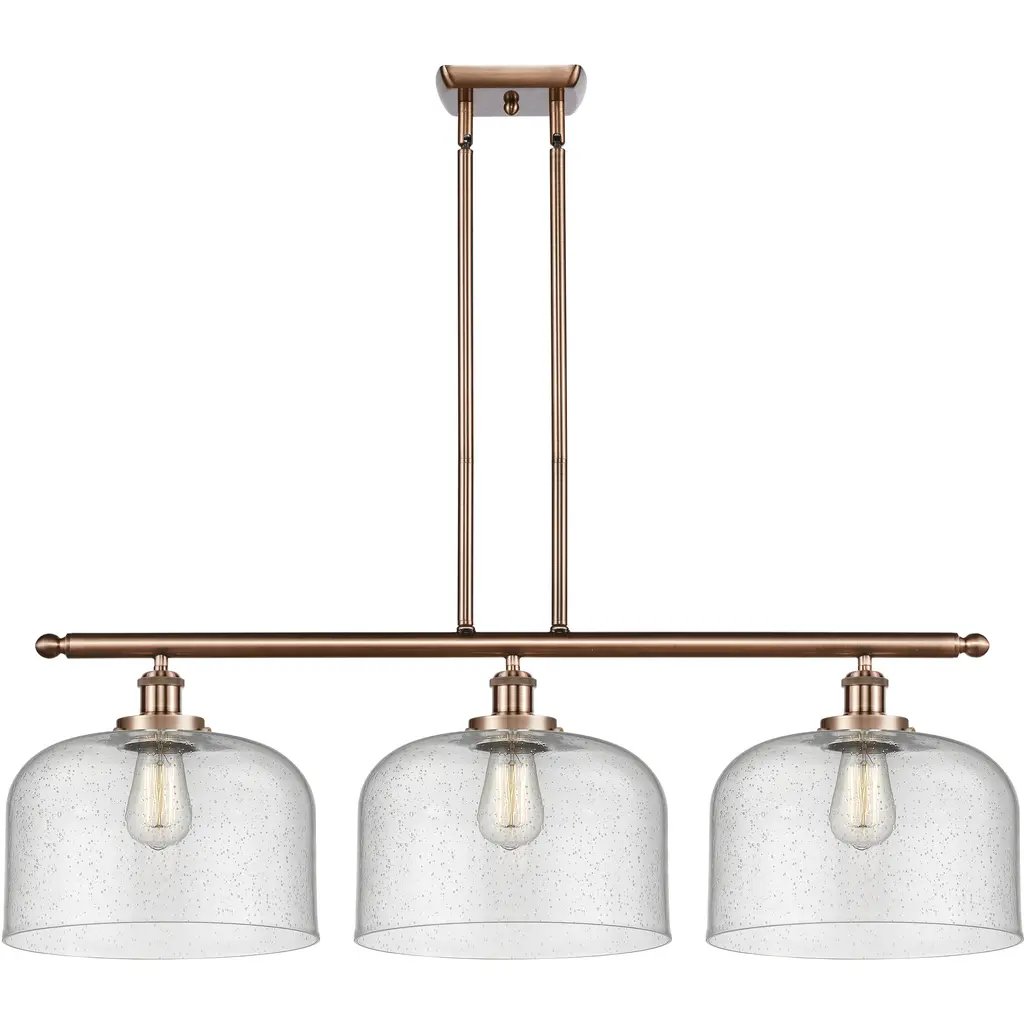 The X-Large Bell 3 Light Island Light is part of the Ballston Collection. Includes 10 Feet Wire. Includes 2-6 and 4-12 inch Stems With Solid Brass 90 Degree Hang Straight Swivels for Sloped Ceilings. Solid Brass 90 Degree Hang Straight Swivel for Sloped Ceilings Included