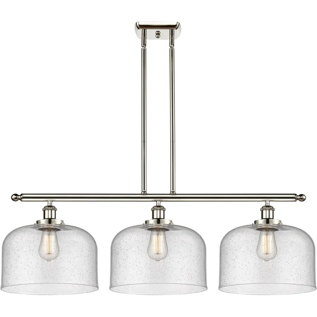 The X-Large Bell 3 Light Island Light is part of the Ballston Collection. Includes 10 Feet Wire. Includes 2-6 and 4-12 inch Stems With Solid Brass 90 Degree Hang Straight Swivels for Sloped Ceilings. Solid Brass 90 Degree Hang Straight Swivel for Sloped Ceilings Included