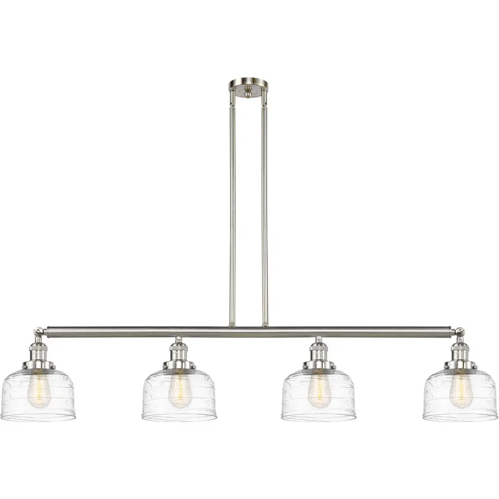 The X-Large Bell 4 Light Island Light is part of the Ballston Collection. Includes 10 Feet Wire. Includes 2-6 and 4-12 inch Stems With Solid Brass 90 Degree Hang Straight Swivels for Sloped Ceilings. Solid Brass 90 Degree Hang Straight Swivel for Sloped Ceilings Included