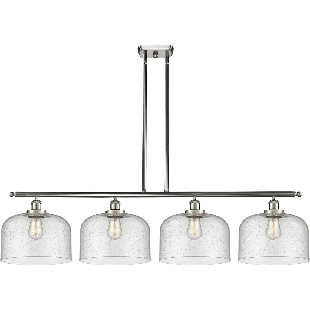 The X-Large Bell 4 Light Island Light is part of the Ballston Collection. Includes 10 Feet Wire. Includes 2-6 and 4-12 inch Stems With Solid Brass 90 Degree Hang Straight Swivels for Sloped Ceilings. Solid Brass 90 Degree Hang Straight Swivel for Sloped Ceilings Included