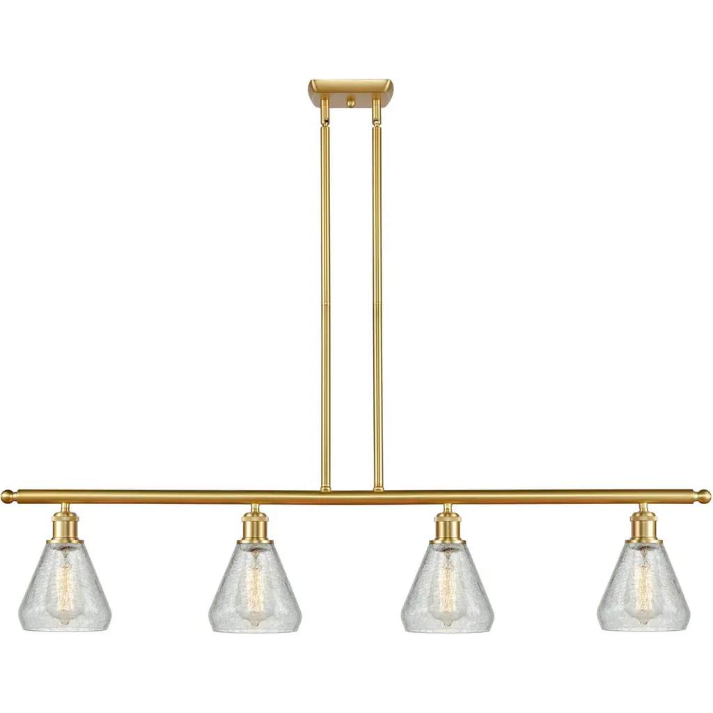Ballston X-Large Cone 4 Light 48 Inch Brushed Brass Island Light Ceiling Light In Seedy Glass