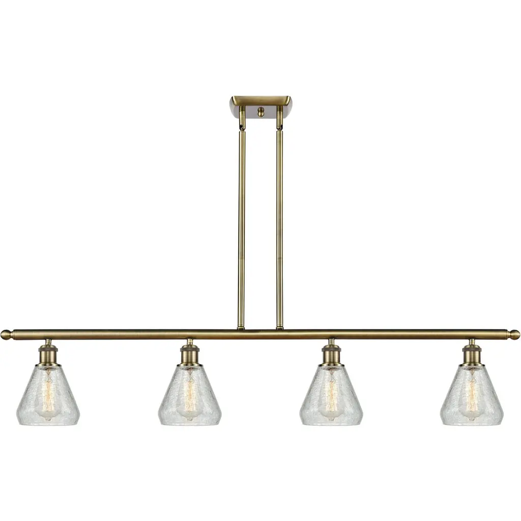 The X-Large Cone 4 Light Island Light is part of the Ballston Collection. Includes 10 Feet Wire. Includes 2-6 and 4-12 inch Stems. Additional Stems sold separately.. Solid Brass 90 Degree Hang Straight Swivel for Sloped Ceilings Included