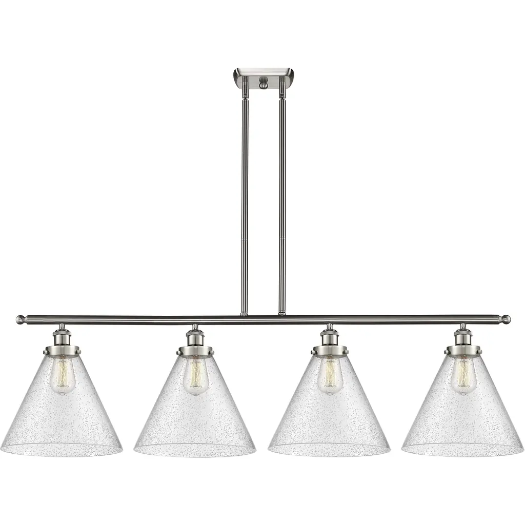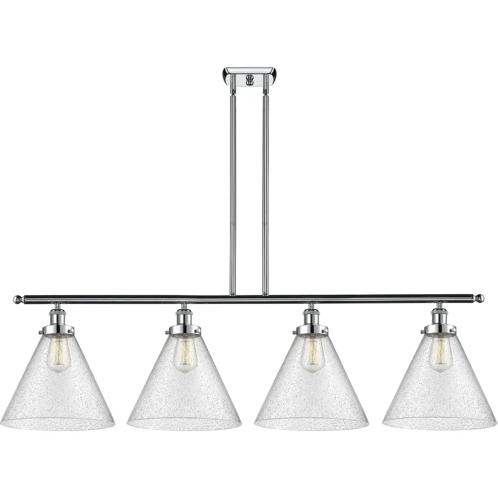 Ballston X-Large Cone 4 Light 48 Inch White And Polished Chrome Island Light Ceiling Light In Seedy Glass