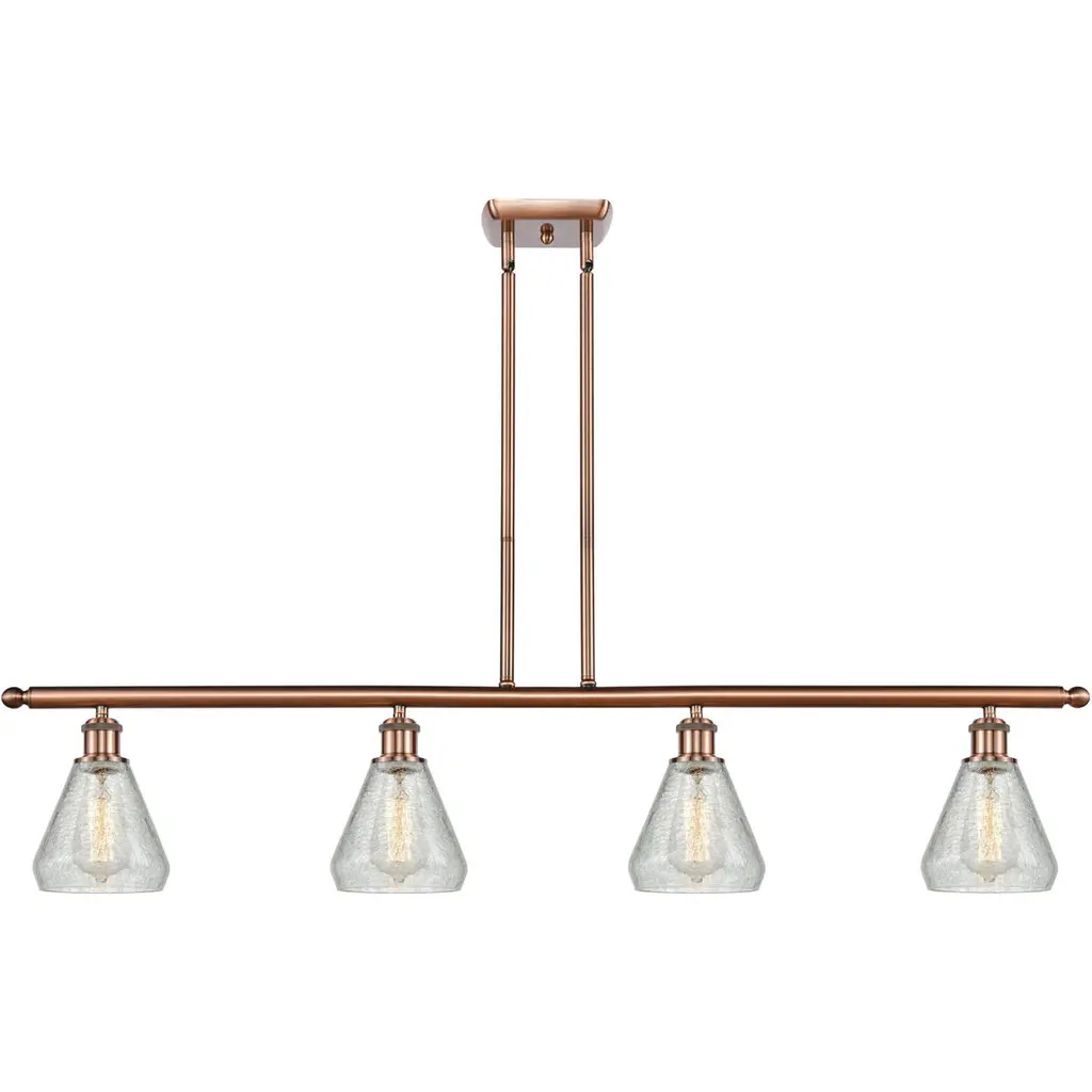 The X-Large Cone 4 Light Island Light is part of the Ballston Collection. Includes 10 Feet Wire. Includes 2-6 and 4-12 inch Stems With Solid Brass 90 Degree Hang Straight Swivels for Sloped Ceilings. Solid Brass 90 Degree Hang Straight Swivel for Sloped Ceilings Included
