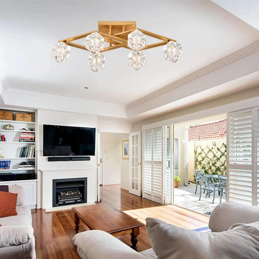 Baoure 6-light Crystal Ceiling Light For Dining Room, 24.9in Gold Modern Ceiling Lamp With Light Fixture For Farmhouse Entryway Living Room