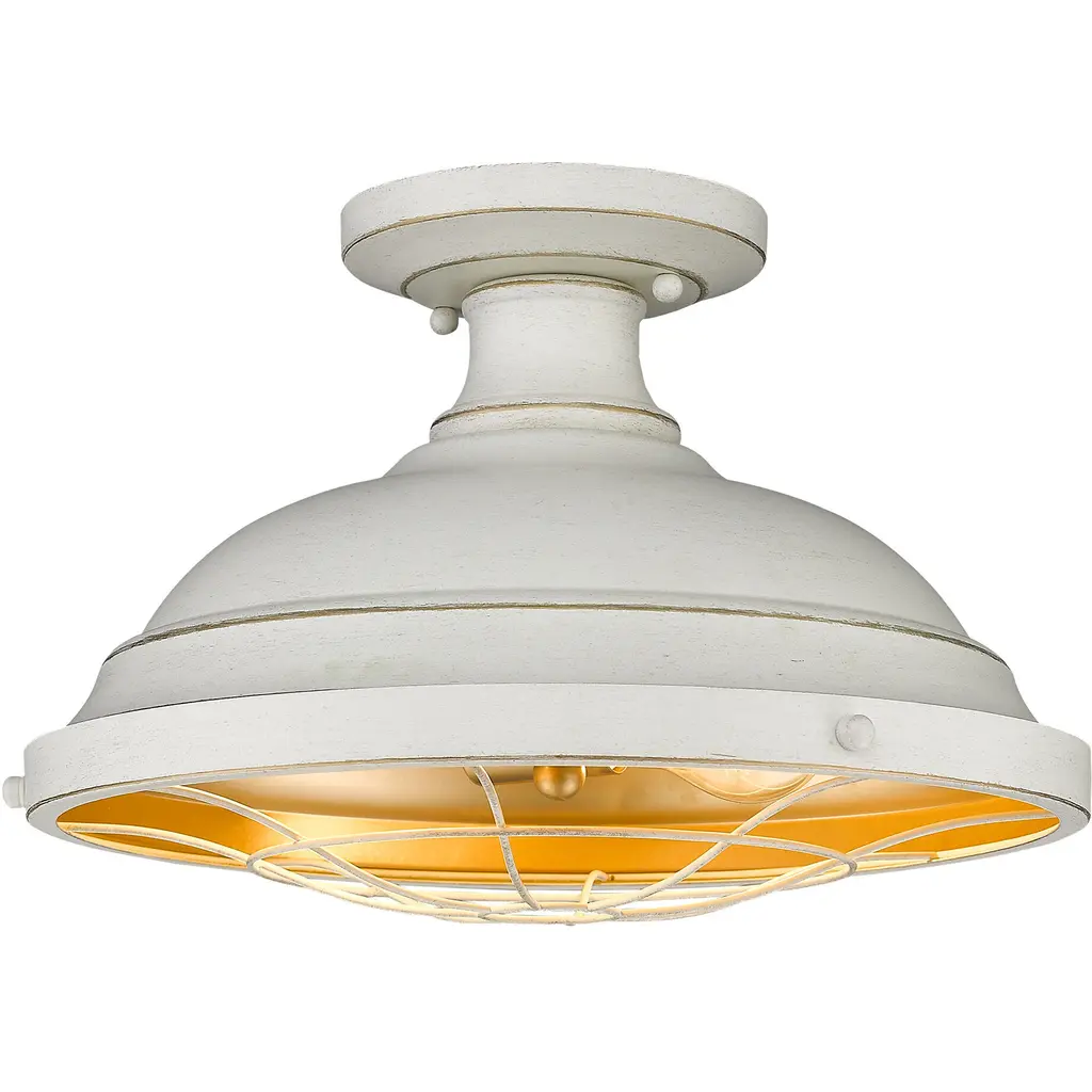 Bring traditional elegance into your home with the Golden Lighting Bartlett 2-light Semi-Flush Mount. Featuring a metal shade and a Copper Patina frame, it creates a welcoming atmosphere.The metal shade beautifully diffuses light, enhancing the ambiance in any room. The Copper Patina finish displays a complex surface of naturally aged metal, complemented by a rich texture that adds depth and authenticity to the piece.This light is suitable for covered and semi-enclosed spaces, such as bathrooms and laundry rooms, with a damp rating. It's perfect for entryways, kitchens, and living areas with mid-height ceilings.Overall dimensions are 14"W x 9.25"H x 14"D, and it requires 2 E26 Medium base bulbs, with a maximum wattage of 60 per bulb.Elevate your space with quality lighting that combines rustic charm and refinement.
