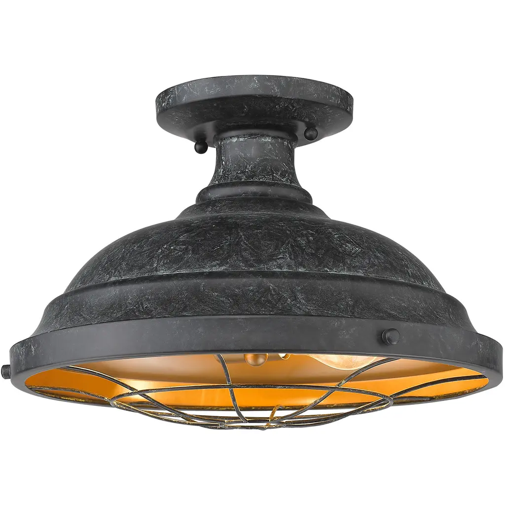 Bartlett 2 Light 14 Inch Copper Patina Semi-Flush Mount Ceiling Light, Damp