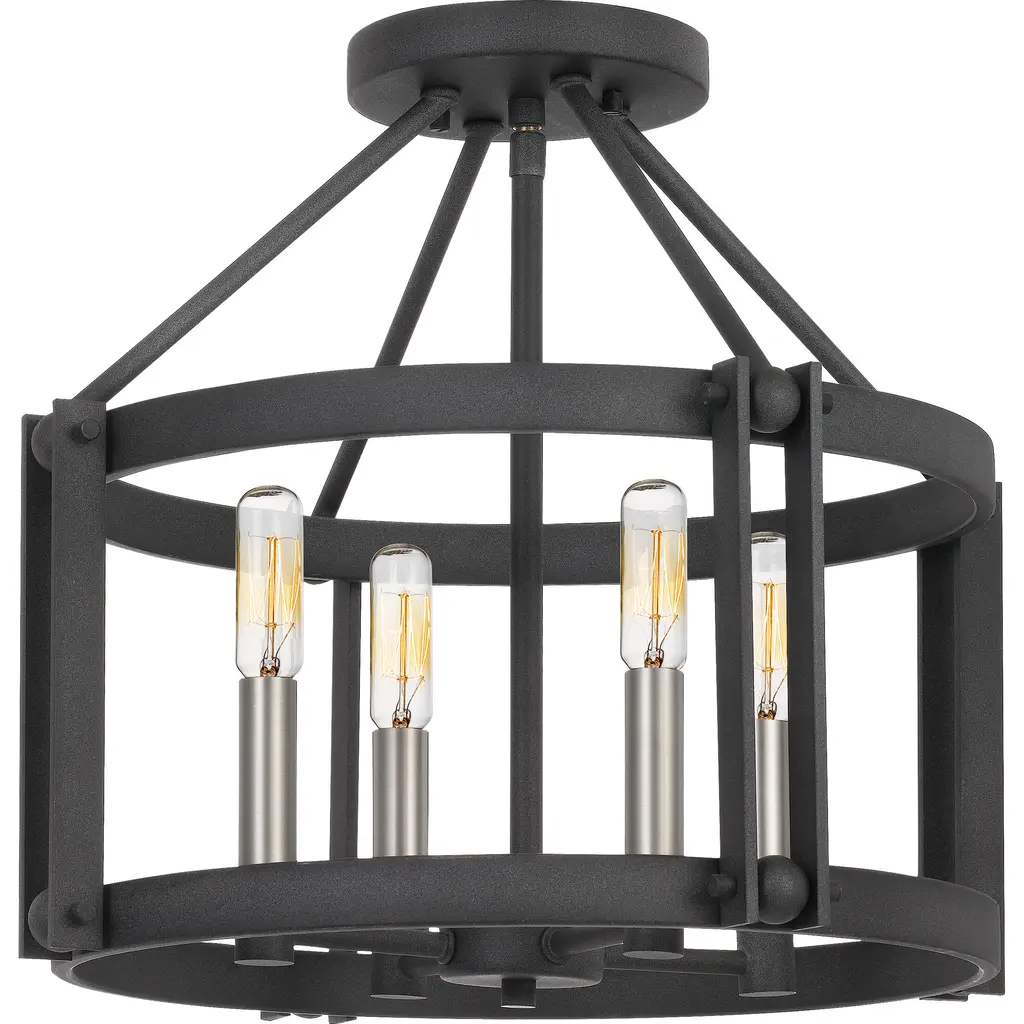 Benson 3 Light 13 Inch Matte Black Semi-Flush Ceiling Light, Essentials