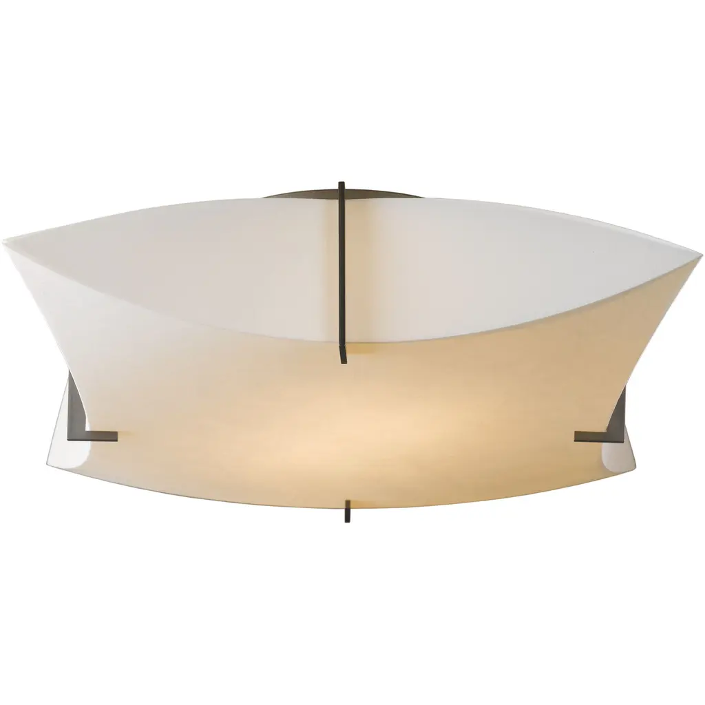 Our Bento Semi-Flush provides soft light with exceptional style. Slim metal arms hold a square-shaped shade with elegantly-curved panels. Handcrafted in Vermont, each piece is unique.