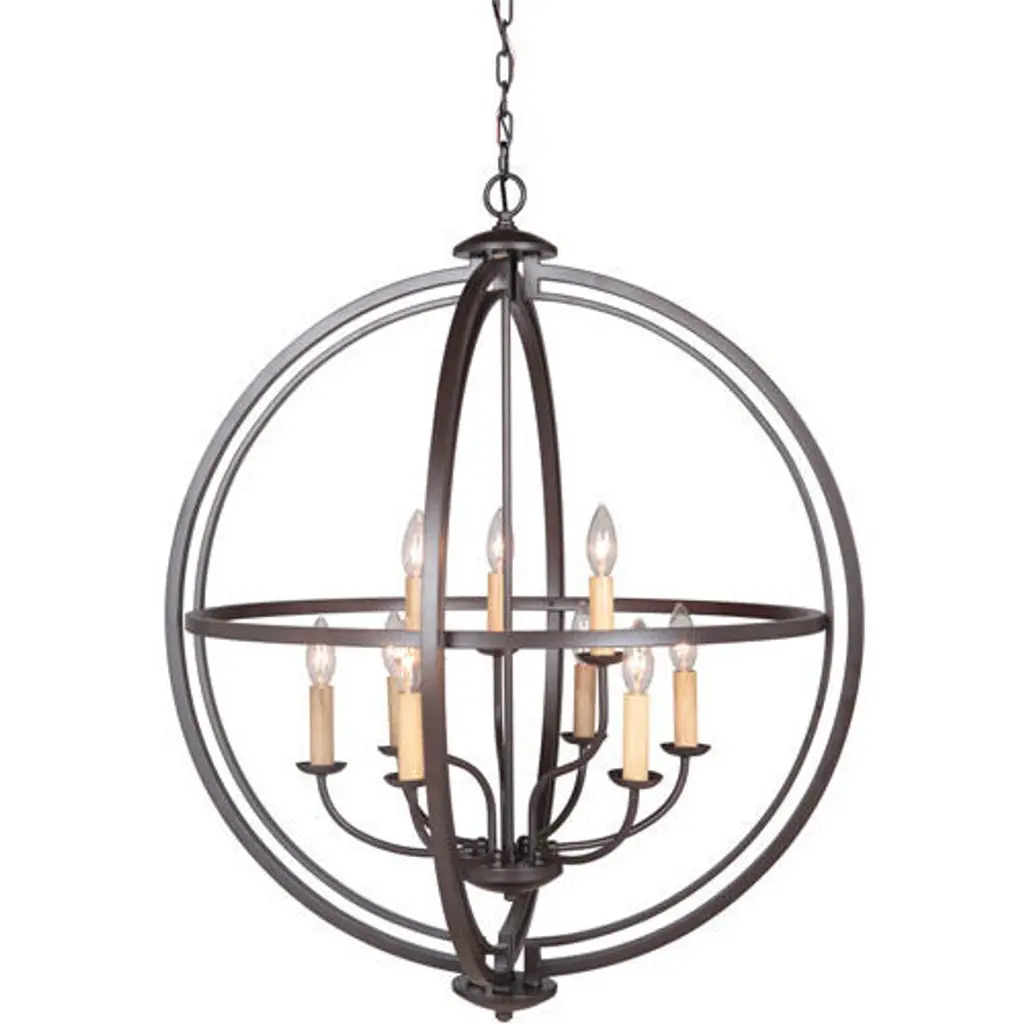 The Berkeley lighting series combines old-world charm with a symbol of new-world innovation and discovery. The open globe framework provides the illusion of movement around a simple candelabra light source.