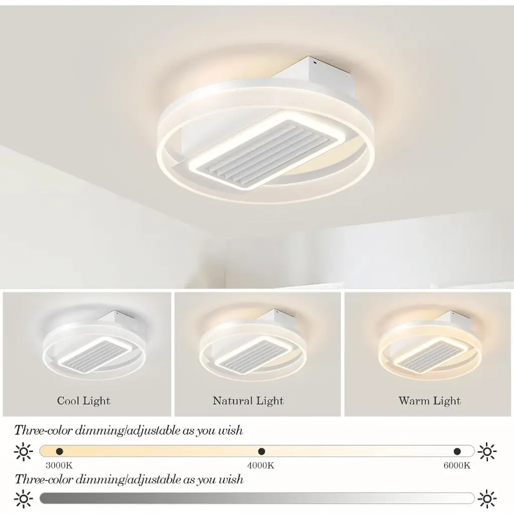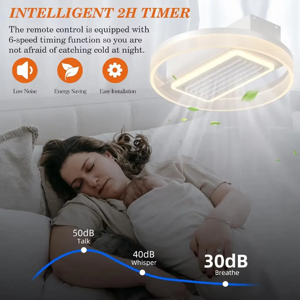 Bladeless Fan Lamp With Lights Dimmable Led, Timing 6 Speeds Fan Ceiling Lamp, With Remote, Smart Bladeless Fans White