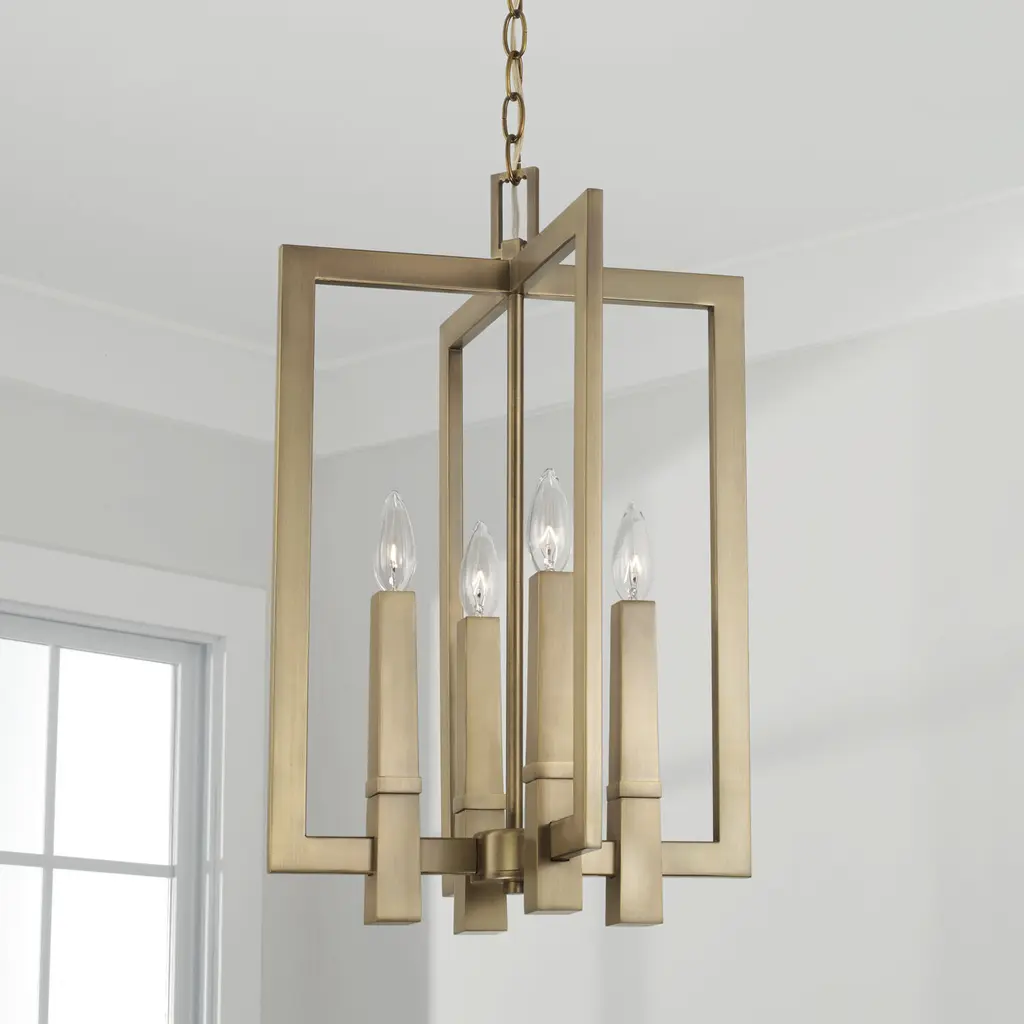 Bold meets minimal with the Blake Foyer. The Aged Brass finish accents the strong lines creating a sculptural statement.