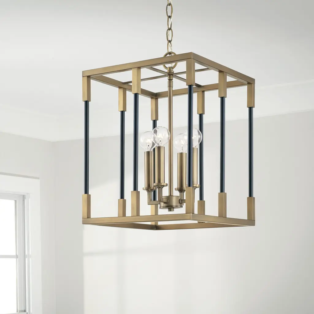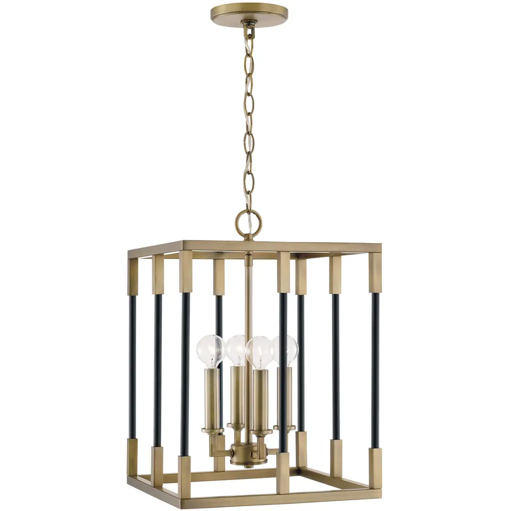Bleeker 4 Light 13 Inch Aged Brass And Black Foyer Ceiling Light