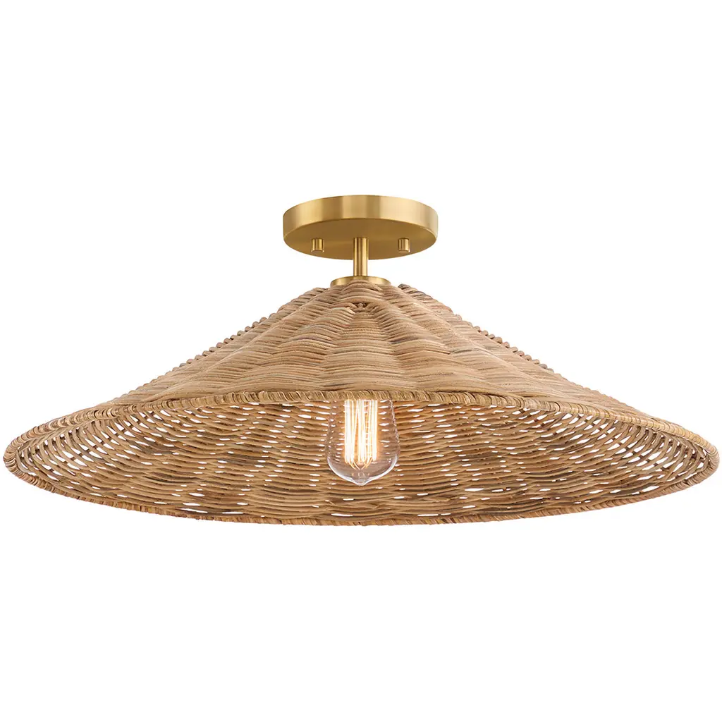 Bohemian 1 Light 22 Inch Natural Brass Semi-Flush Ceiling Light