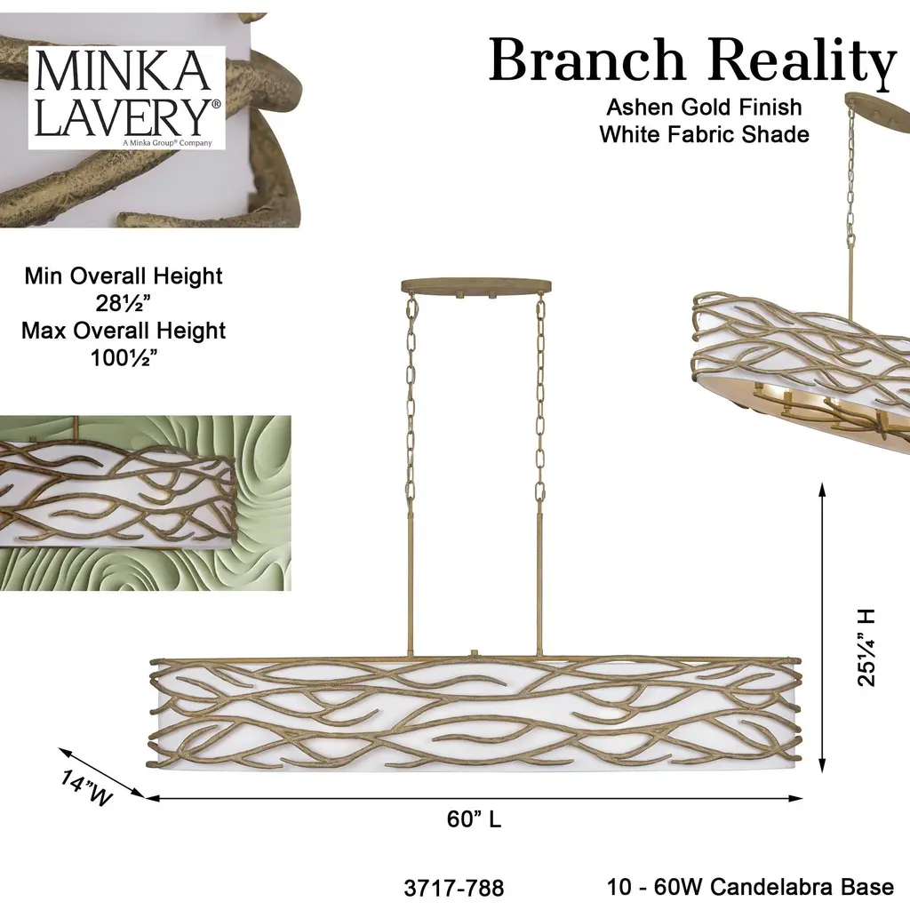 This 10 light Island Light from the Branch Reality collection by Minka-Lavery will enhance your home with a perfect mix of form and function. The features include a Textured Ashen Gold finish applied by experts. This item qualifies for free shipping!
