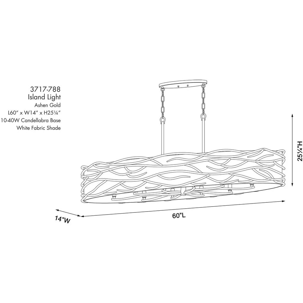 Branch Reality 10 Light 60 Inch Textured Ashen Gold Island Light Ceiling Light