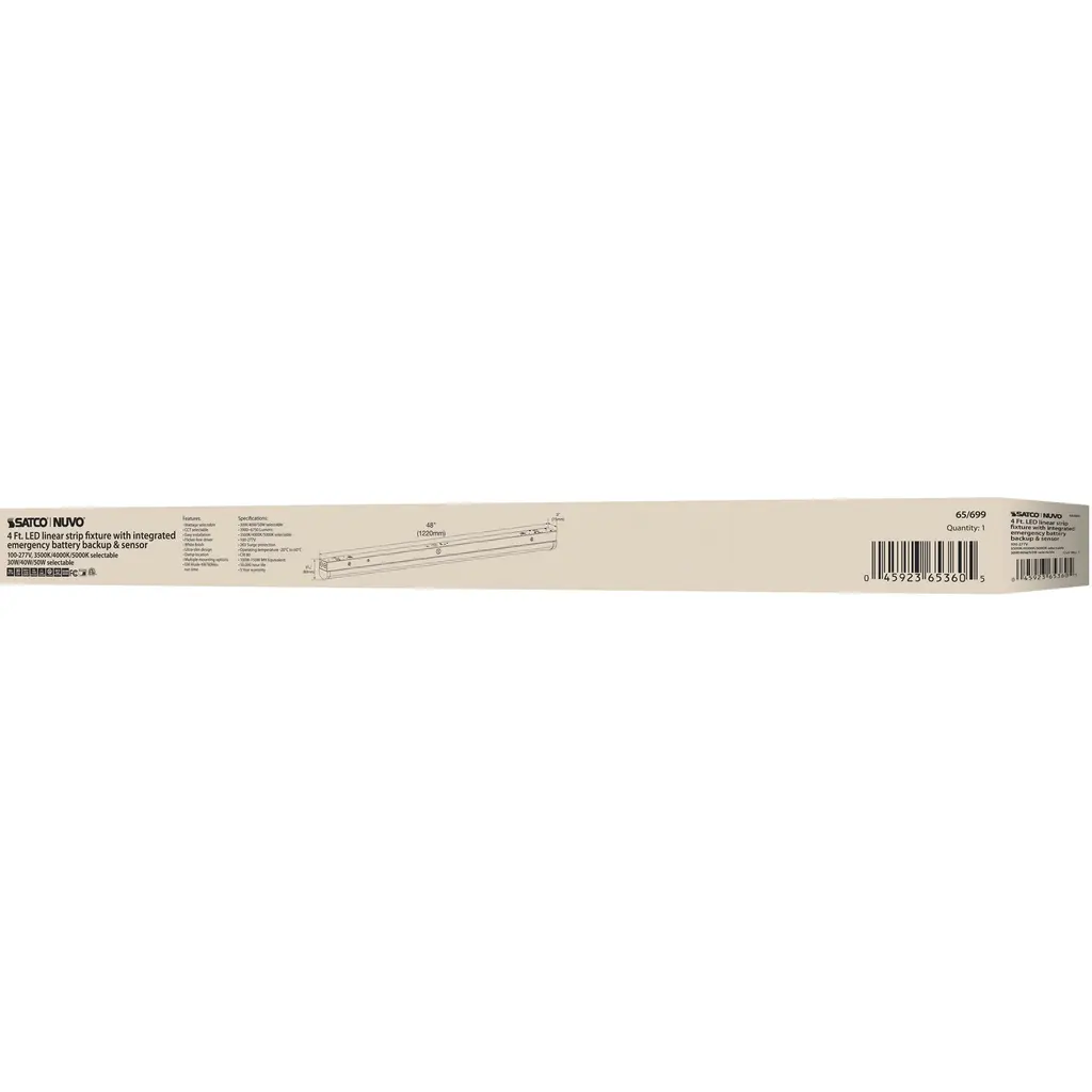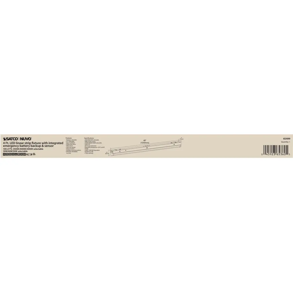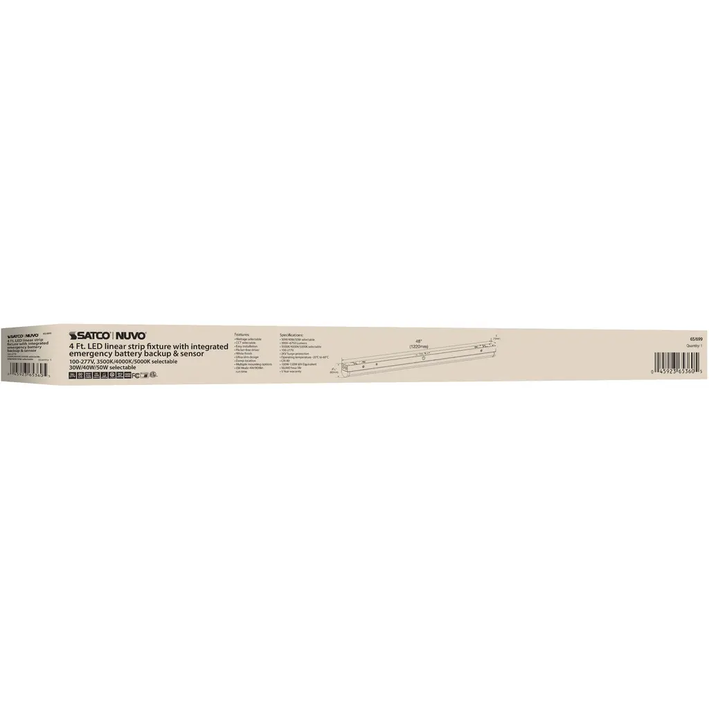LED 4 ft. Linear Strip Light - 30W/40W/50W - White Finish - Watt & CCT Selectable - 100-277V - Integrated EM & Sensor