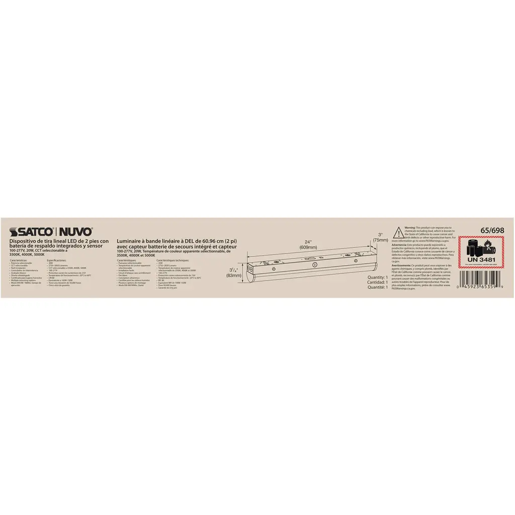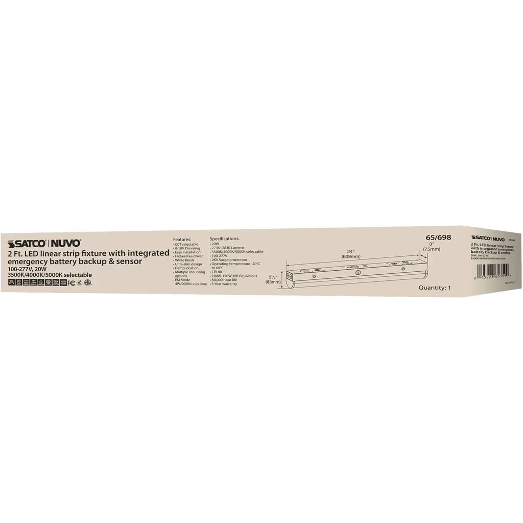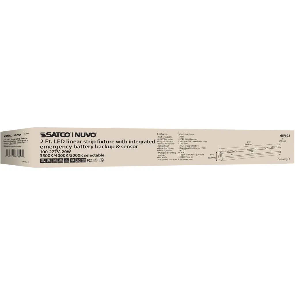 LED 2 ft. Linear Strip Light - 20W - White Finish - CCT Selectable - 100-277V - Integrated EM & Sensor