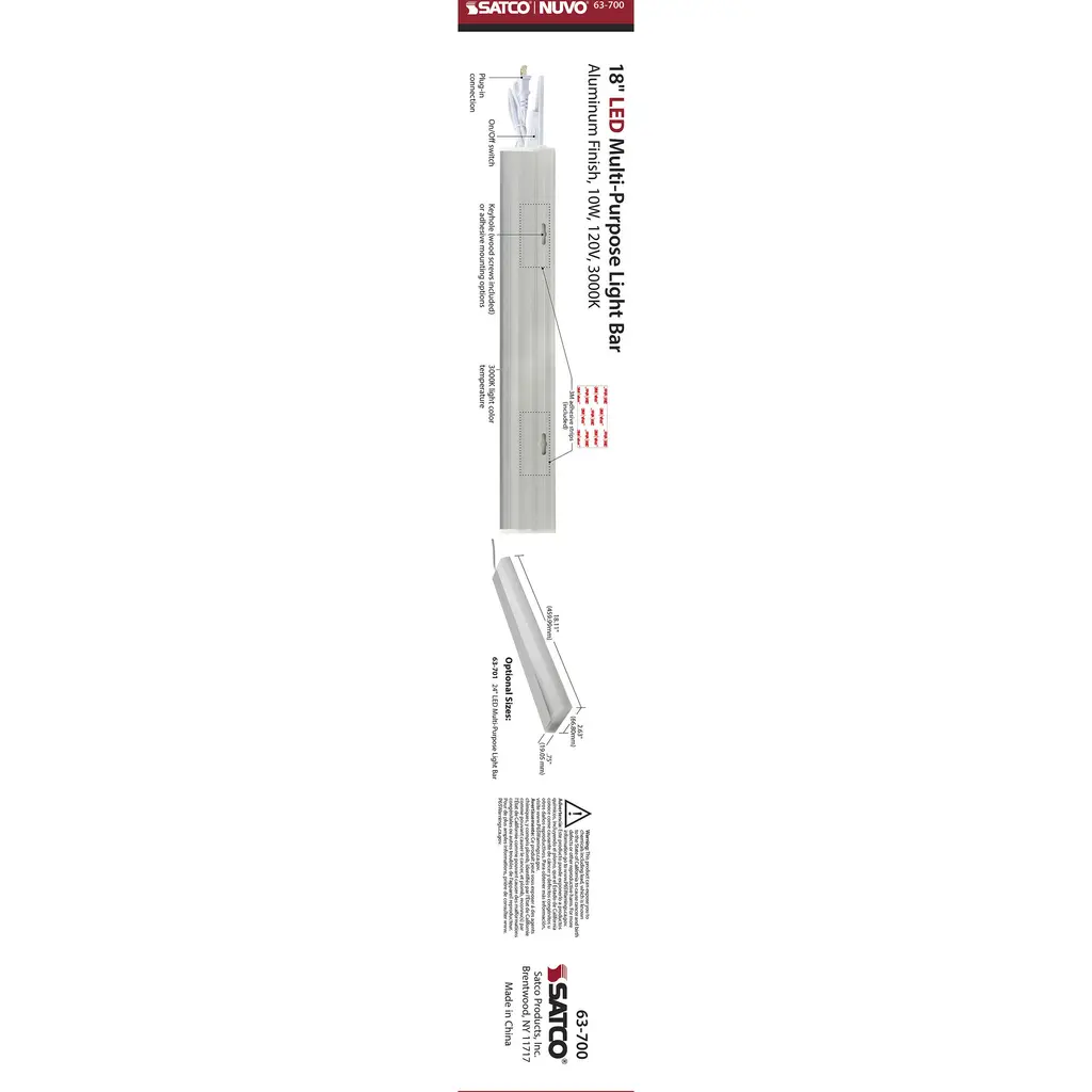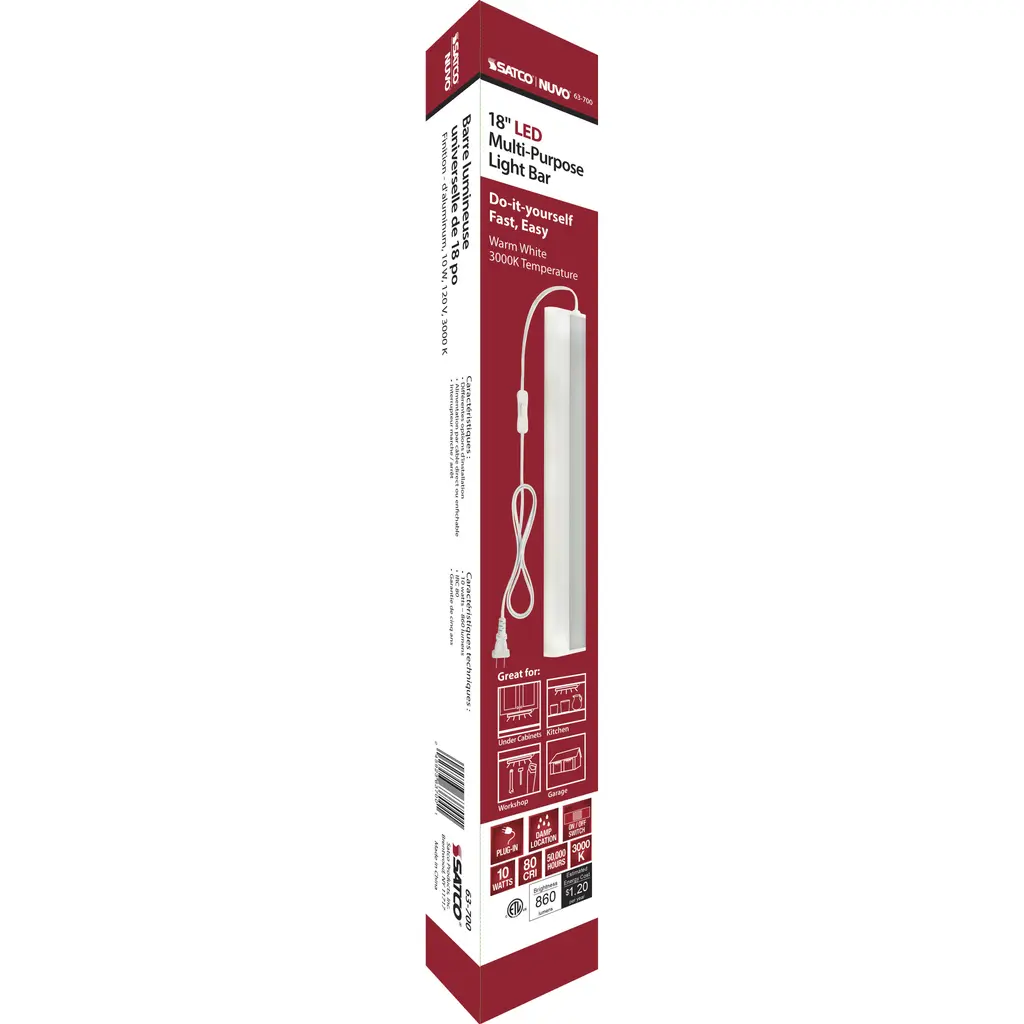 10W LED Under Cabinet Light Bar - 18 inches in length - 3000K - 860 Lumens - 120V