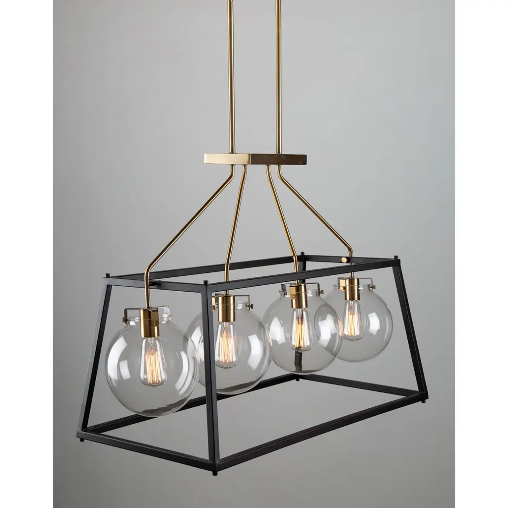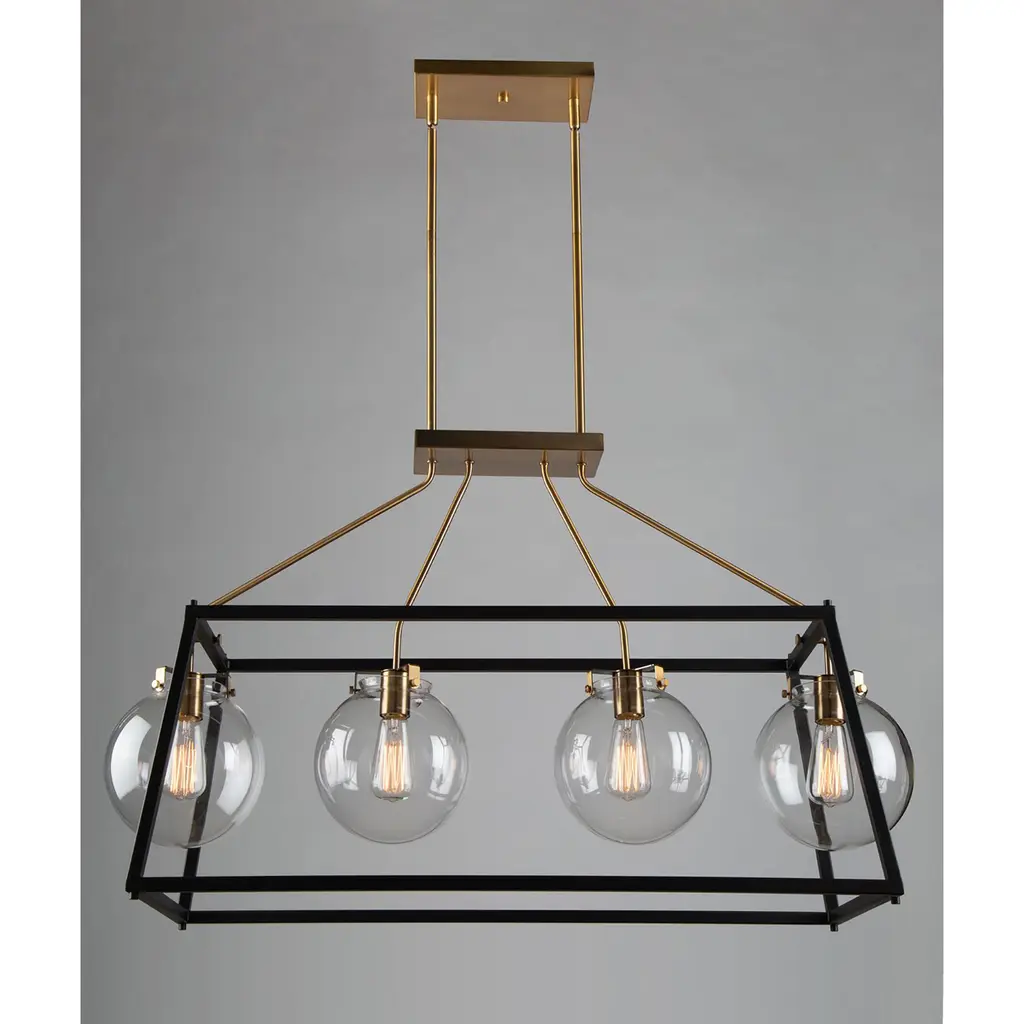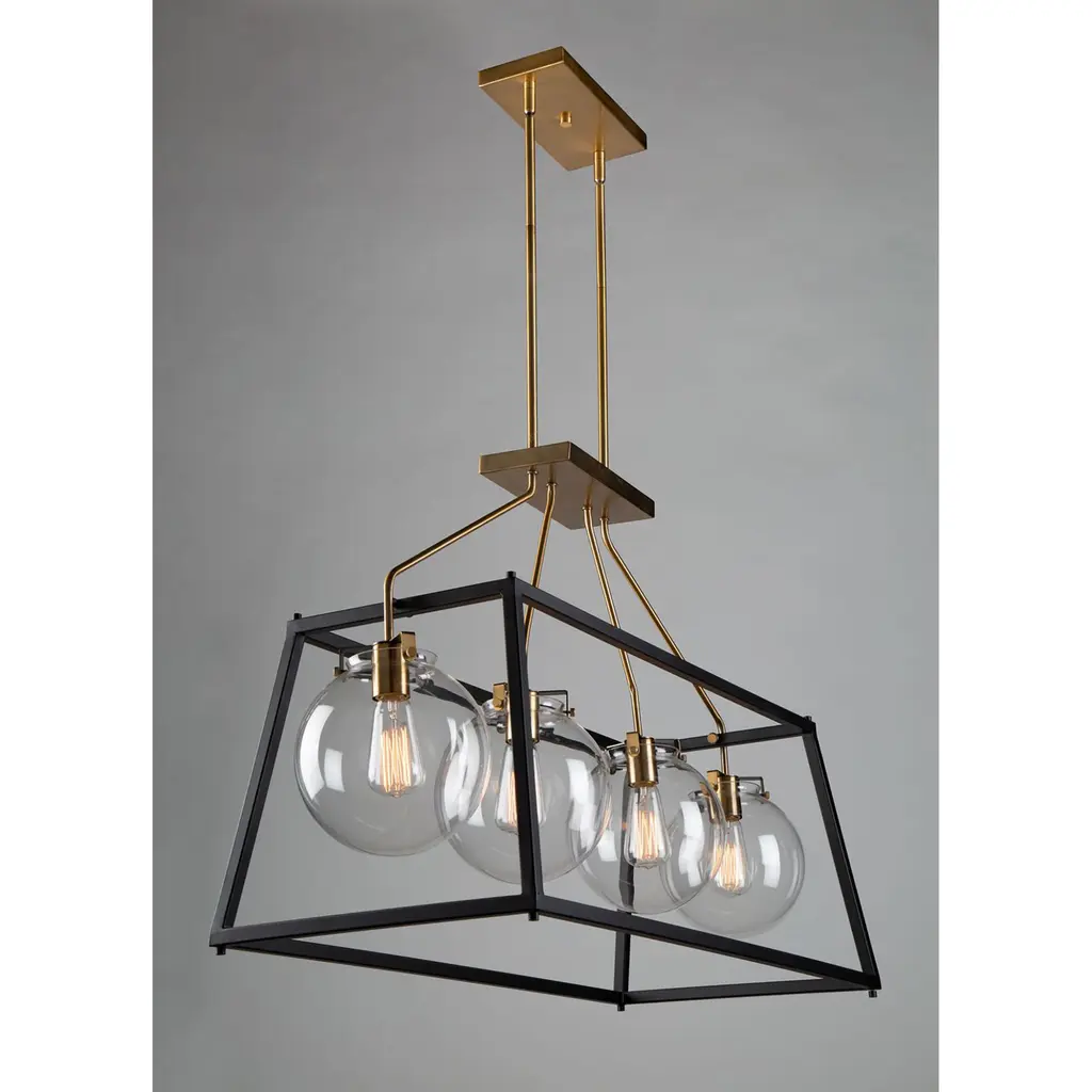 The "Bridgetown" collection features a clean and transitional design that seamlessly blends classic and contemporary elements. The outer frame showcases a black taper square, providing a sleek and sophisticated look. Inside, the frame is plated in a rich harvest brass, adding warmth and elegance to the overall aesthetic. The clear, circular glassware enhances the light's diffusion, creating a bright and inviting atmosphere.